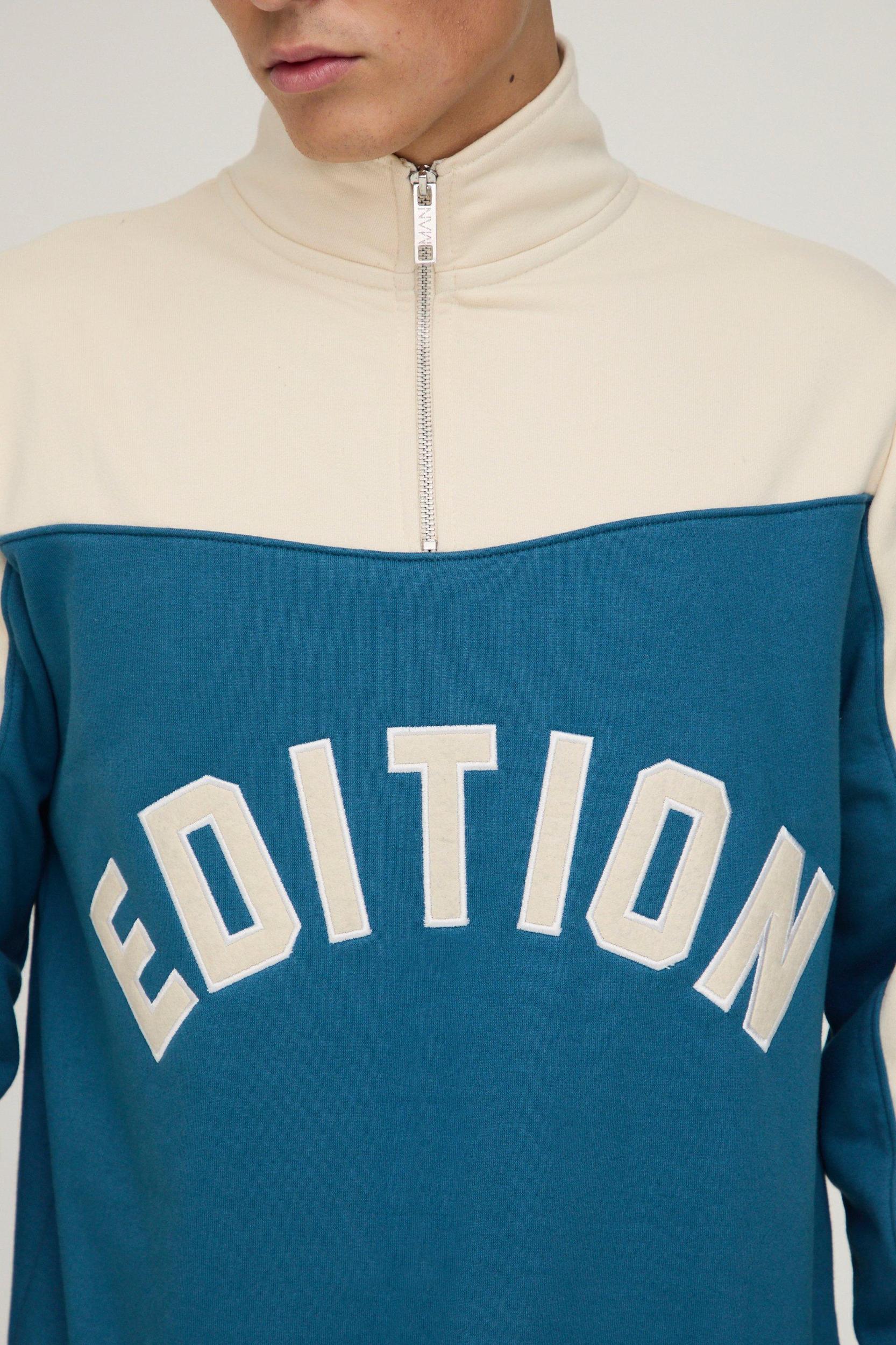 Turn up the fun factor with graphic sweatshirts. When it comes to casual jumpers it's good to have a few basics in your collection – but for dialling up the fun factor, graphic sweatshirts offer all the comfort and versatility of a plain fleece sweater with added personality. We've got big and bold graphic prints for making a statement or more subtle patterns if you're a less-is-more type. We've also got all the styles you expect, from hoodies, zip ups and crew necks in regular, oversized and cropped fits to match any individual style. Team them up with jeans or cargos for an easy weekend combo, or match them with comfy sweatpants for a gym 'fit with extra flair. Style: Printed SweatshirtDesign: Colour BlockFabric: LoopbackDetail: AppliqueLength: RegularNeckline: Funnel NeckSleeve Length: Long Sleeve