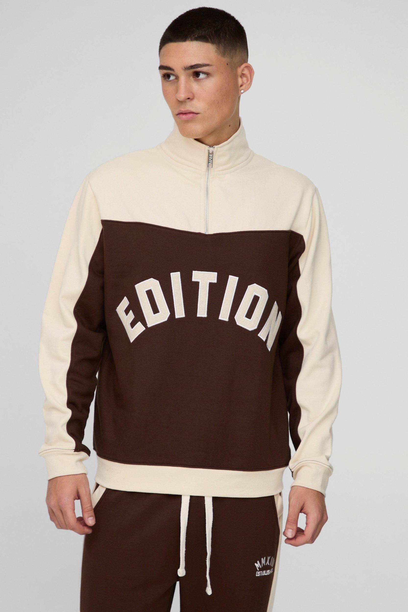 Turn up the fun factor with graphic sweatshirts. When it comes to casual jumpers it's good to have a few basics in your collection – but for dialling up the fun factor, graphic sweatshirts offer all the comfort and versatility of a plain fleece sweater with added personality. We've got big and bold graphic prints for making a statement or more subtle patterns if you're a less-is-more type. We've also got all the styles you expect, from hoodies, zip ups and crew necks in regular, oversized and cropped fits to match any individual style. Team them up with jeans or cargos for an easy weekend combo, or match them with comfy sweatpants for a gym 'fit with extra flair. Style: Printed SweatshirtDesign: Colour BlockFabric: LoopbackDetail: AppliqueLength: RegularNeckline: Funnel NeckSleeve Length: Long Sleeve
