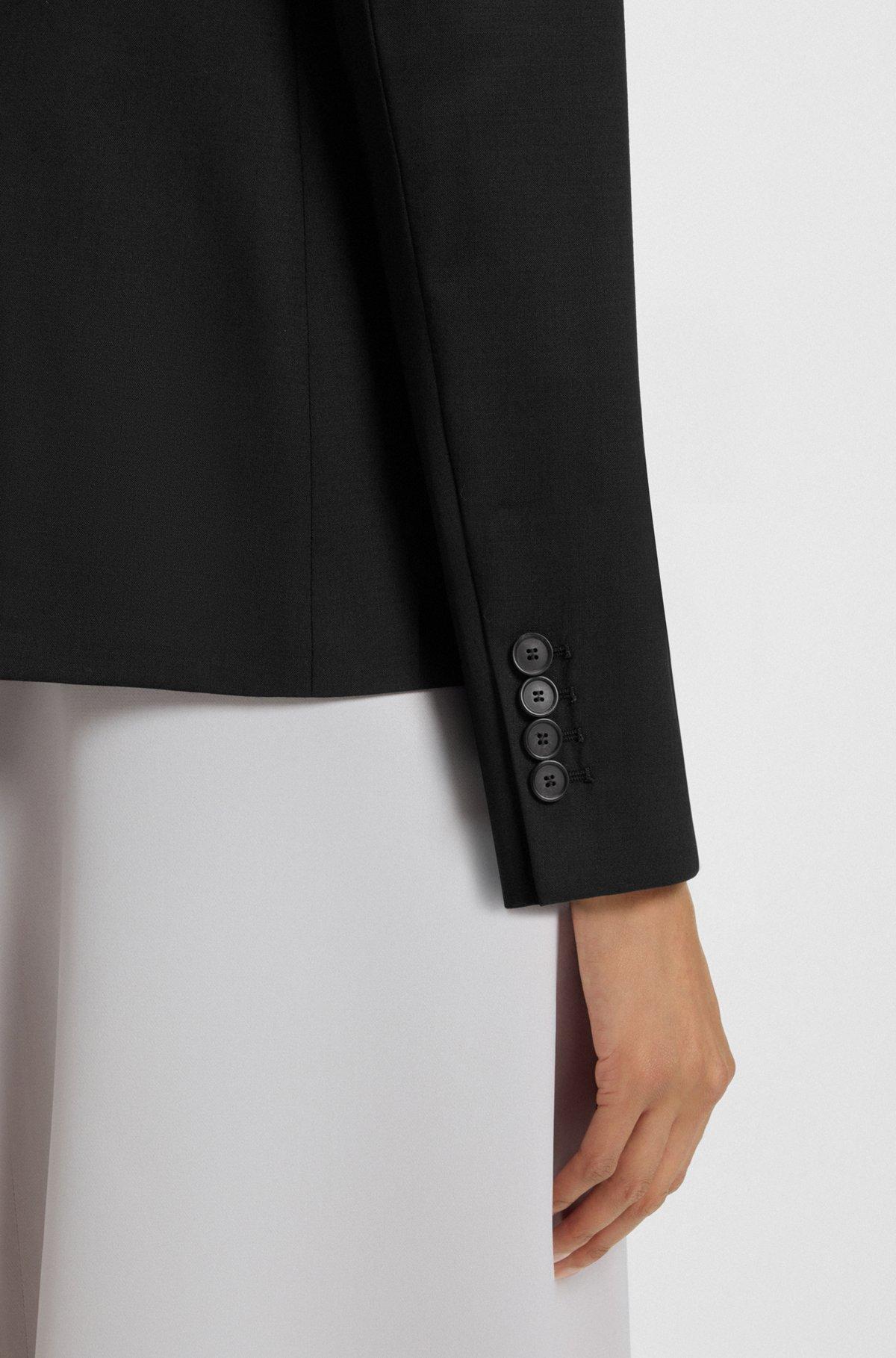 Create a variety of looks with the straight fit and double-breasted closure of this BOSS Womenswear jacket. Unisex suit in virgin wool with natural stretch