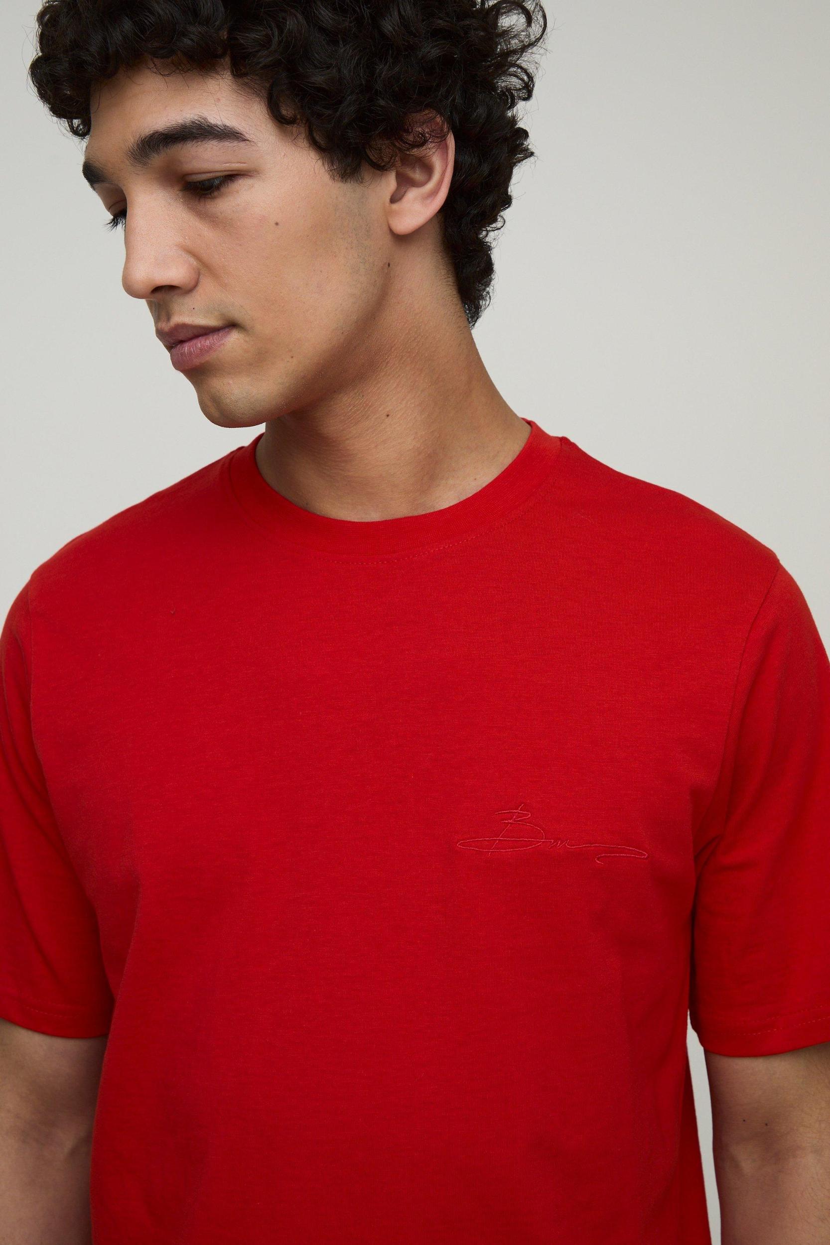 Regular Fit BM Signature Embroidered Crew Neck T-shirt | boohooMAN USA