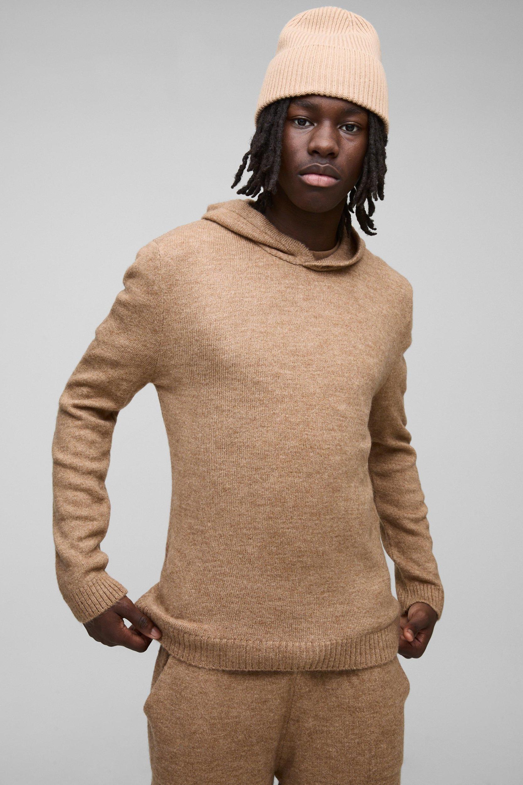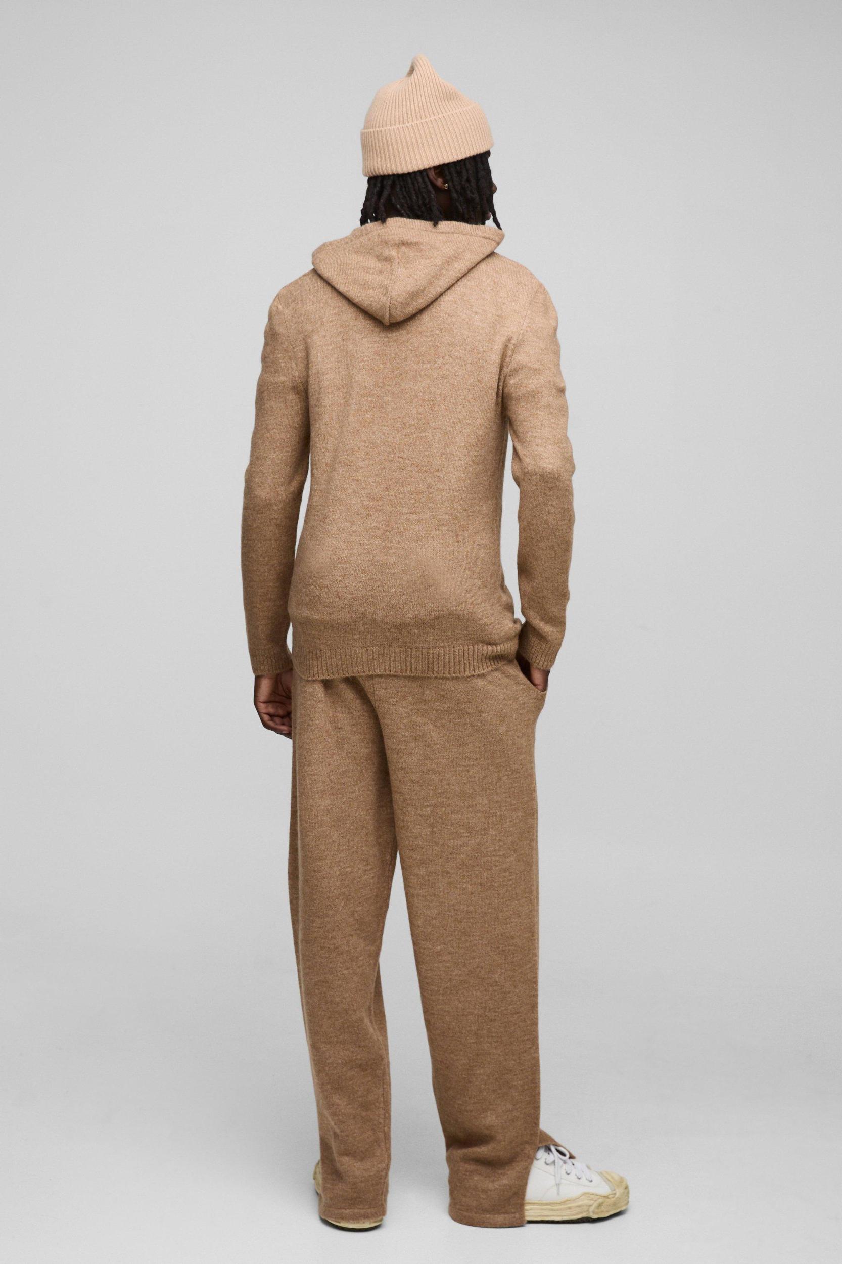 Regular Fit Brushed Knit Hoodie Split Hem Tracksuit | boohooMAN USA