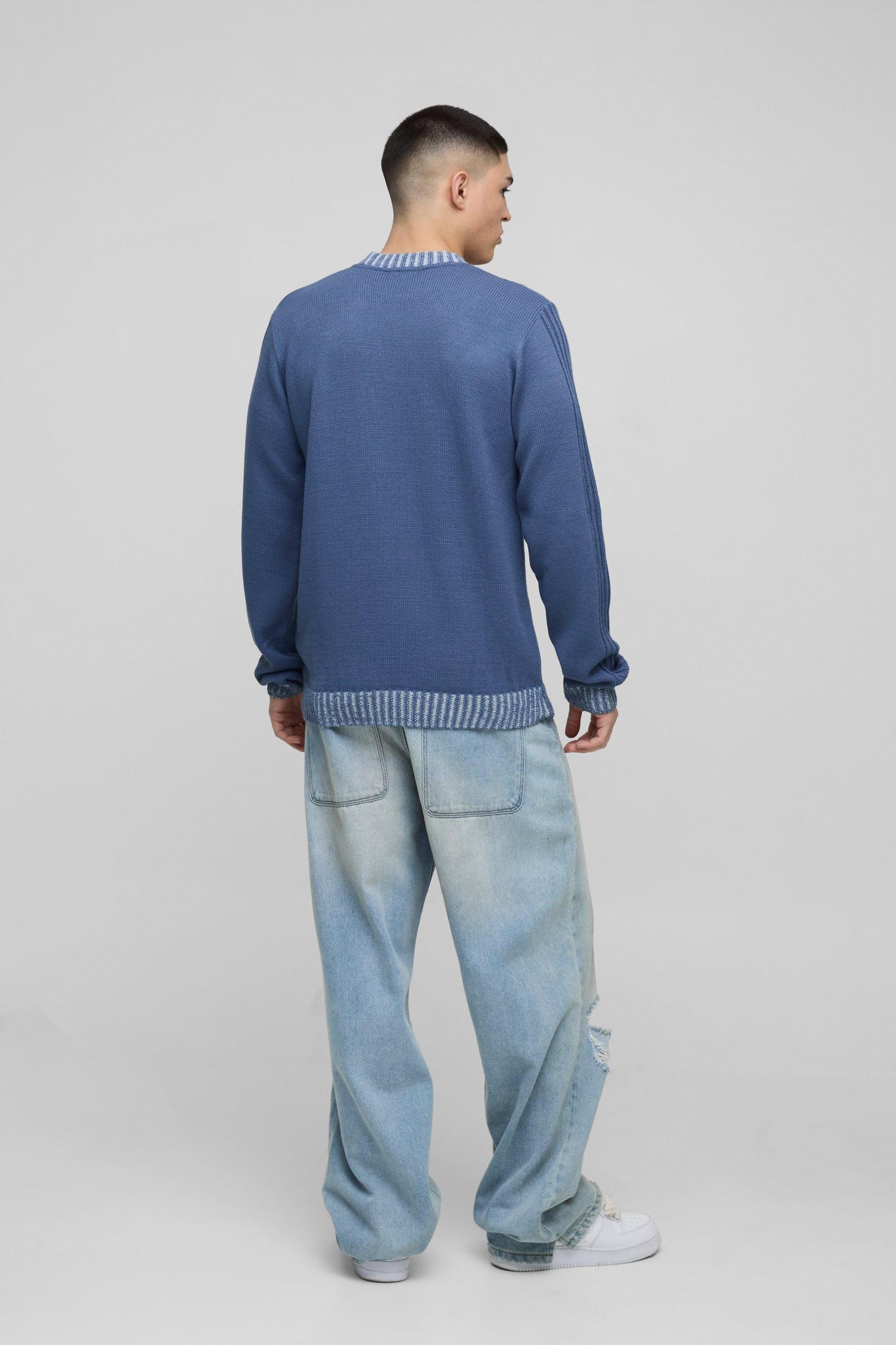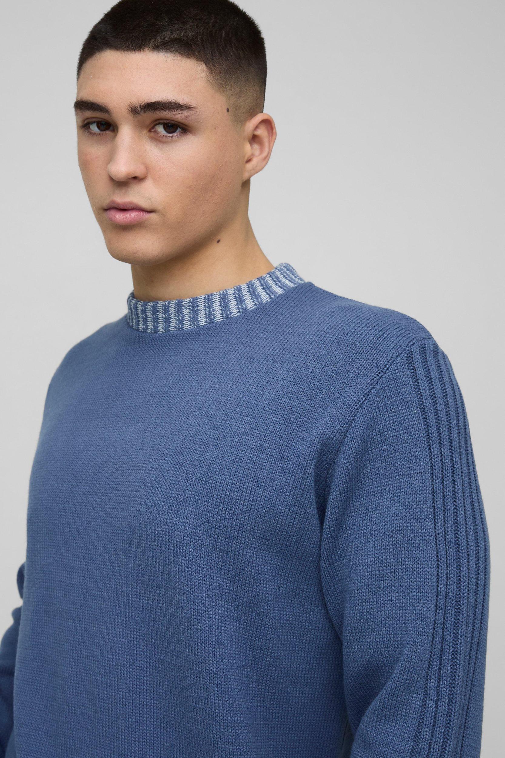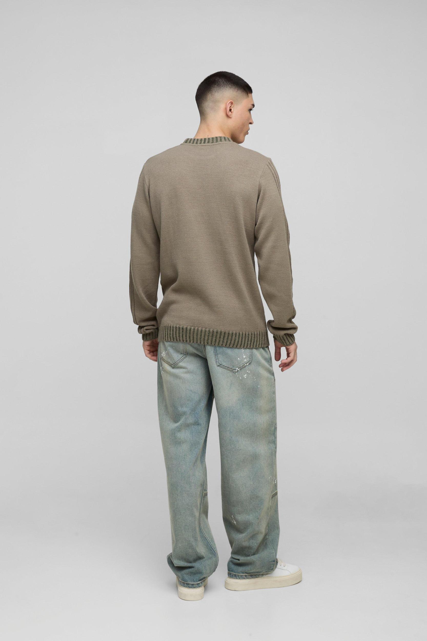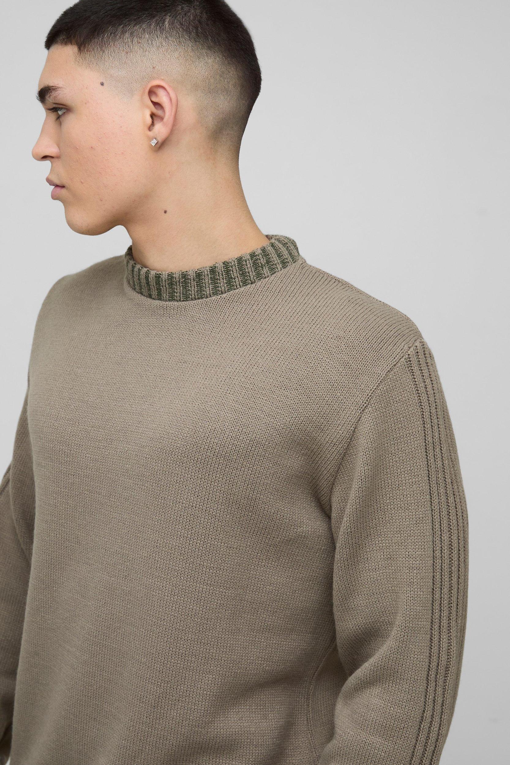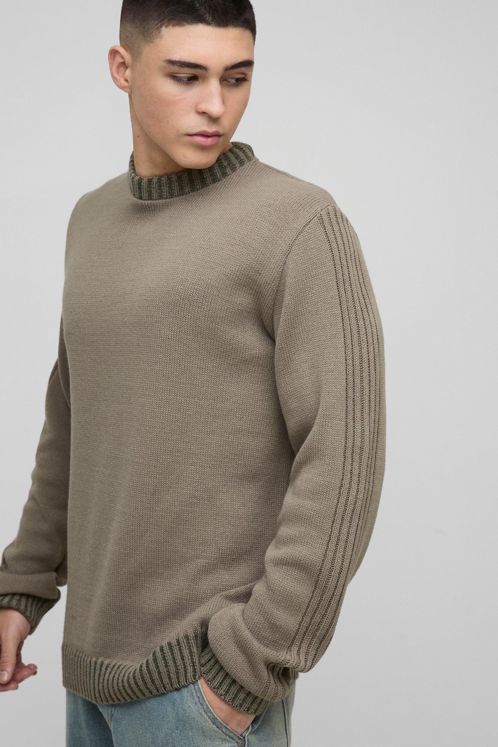 Regular Fit Contrast Rib Knit Sleeve Sweater | boohooMAN USA