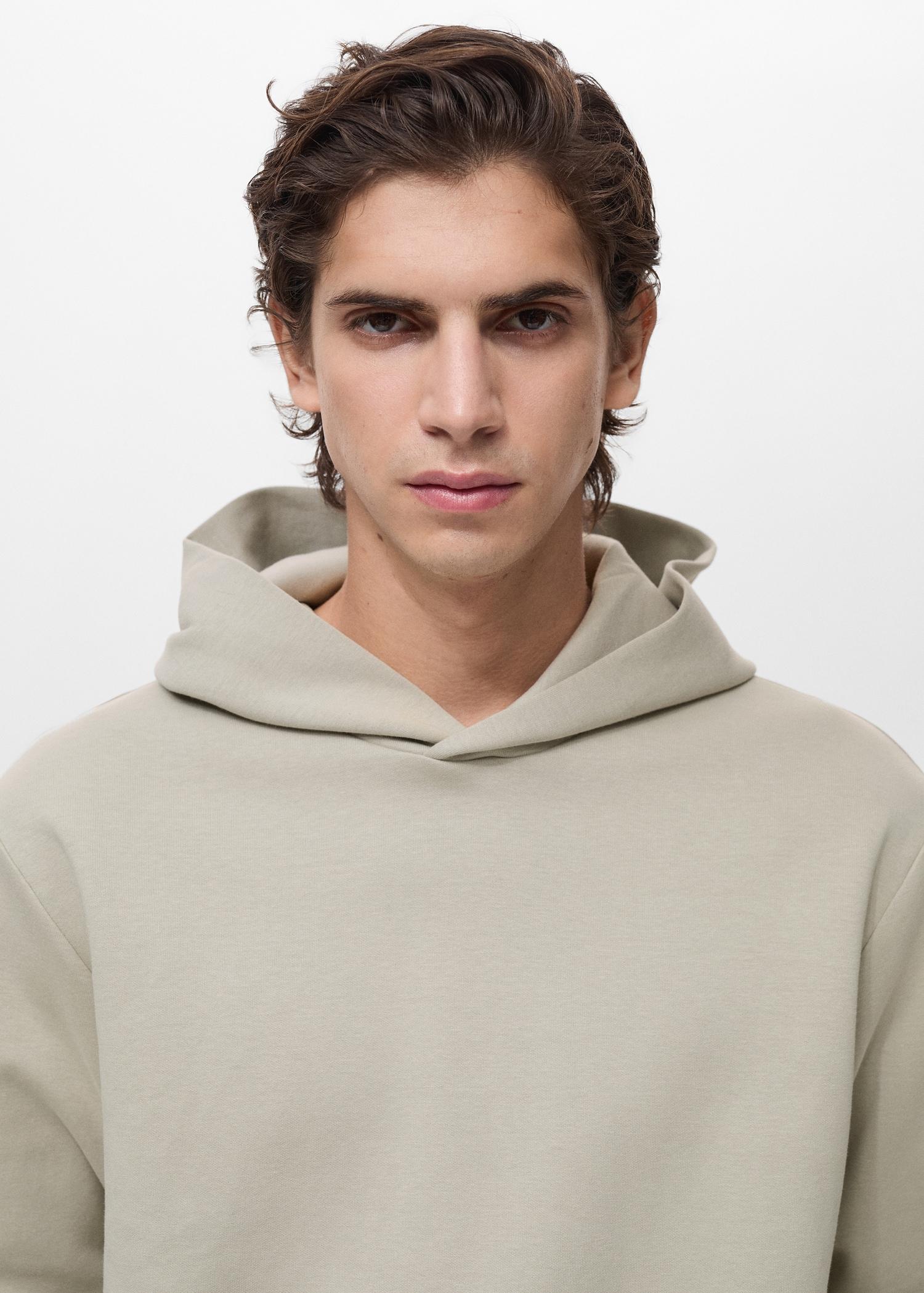 ESSENTIALS: Made to last. Cotton blend fabric. Regular fit. With hood. Ribbed cuffs and hem. Straight hem. Model is 190 cm and wears size M. The light blue color is an online exclusive. Back length 28.54 in. ESSENTIALS: Made to last. We have strengthened our quality standards by adding new endurance tests to our garments. Designed with careful consideration of their construction, they are even more durable, versatile and timeless