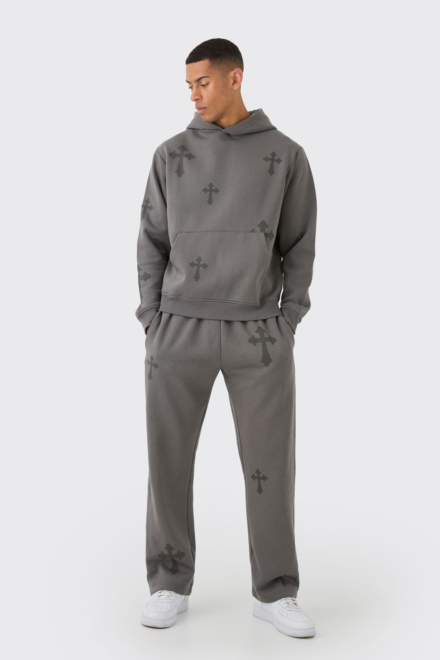 Create cool combos with hooded tracksuits from BoohooMAN. Mix and match shapes and colours with this uber-stylish collection of hooded tracksuits, designed to go from sofa to streets with no extra effort. Show off your lines with a skinny fit set, or pick an oversized hoodie and joggers duo for comfy street casual. With a white tee and trainers you can rock any combo – how about all black for a bold monochrome, long sleeves and shorts for casual summer party vibes or even baby pink or blue for a softer aesthetic. Whichever you choose, with our range of hooded men's tracksuits you'll look effortlessly cool both in the gym and out.Style: Printed Long TracksuitDesign: Gothic/RenaissanceFabric: BrushbackLength: RegularNeckline: HoodedSleeve Length: Long Sleeve