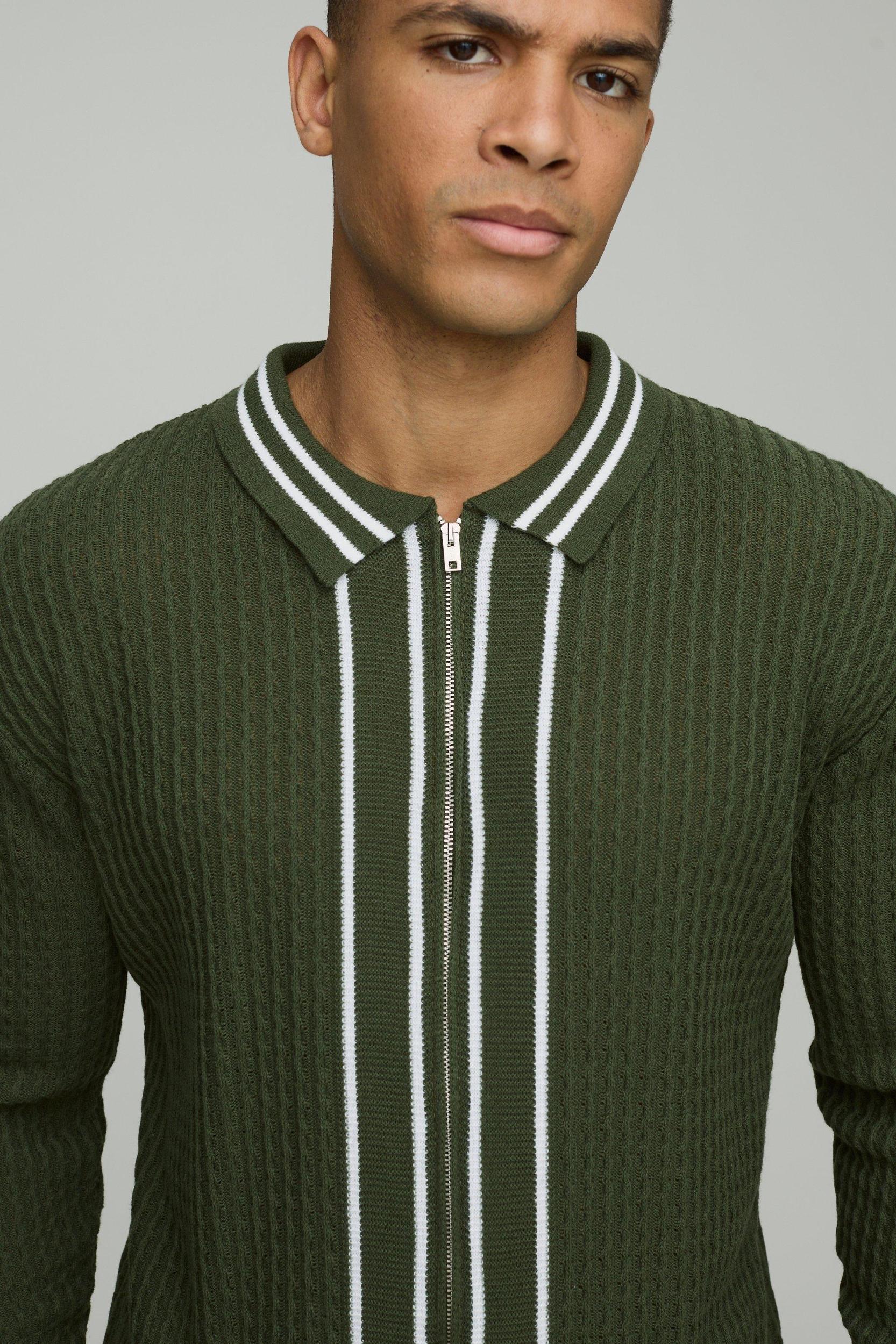 Regular Fit Embroidered Lightweight Zip Up Knitted Shirt | boohooMAN USA