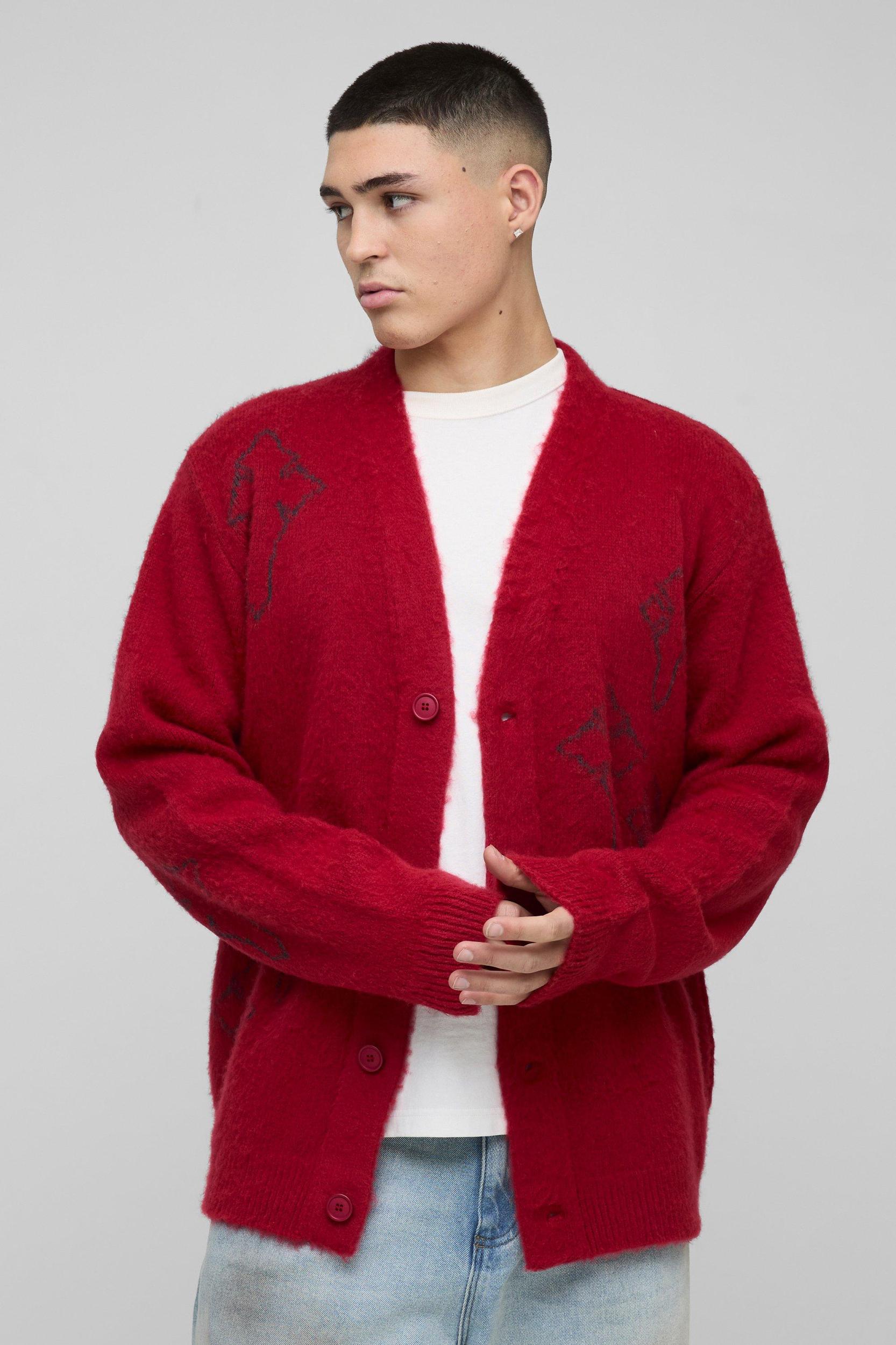 Regular Fit Fluffy Cross Knitted Cardigan | boohooMAN USA
