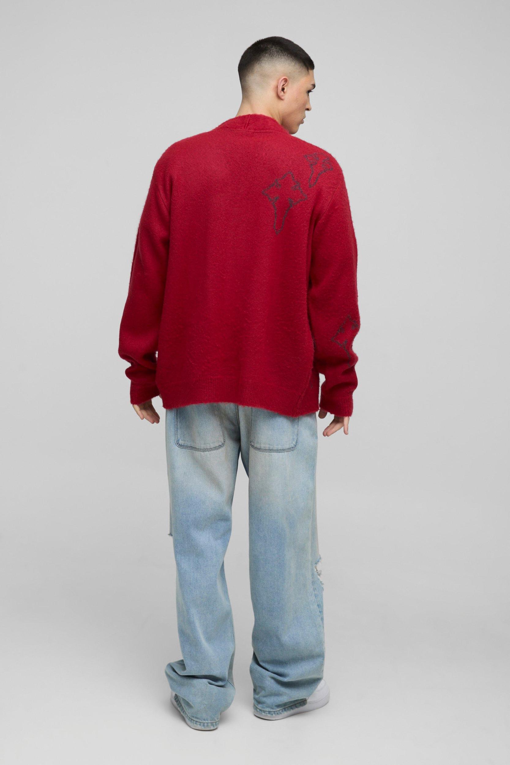 Regular Fit Fluffy Cross Knitted Cardigan | boohooMAN USA Product Image