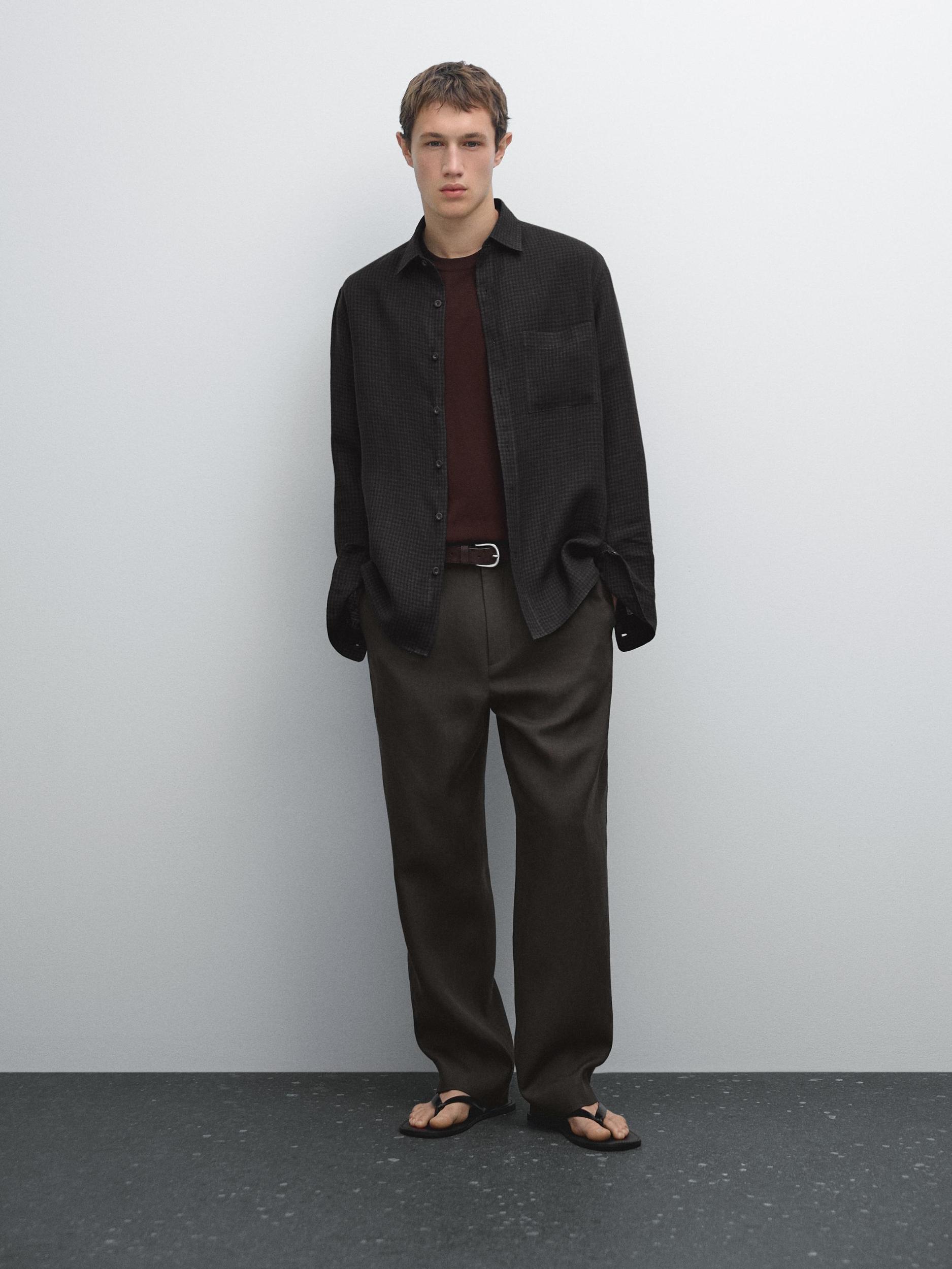 Regular fit: This fit offers comfort with a bit more room in the torso and arms, providing a classic, yet relaxed style, Long sleeves with buttoned cuffs, Gingham, Button-up front, Besom pocket at the chest, Drop-shoulder detail, Made of 100% linen fabric