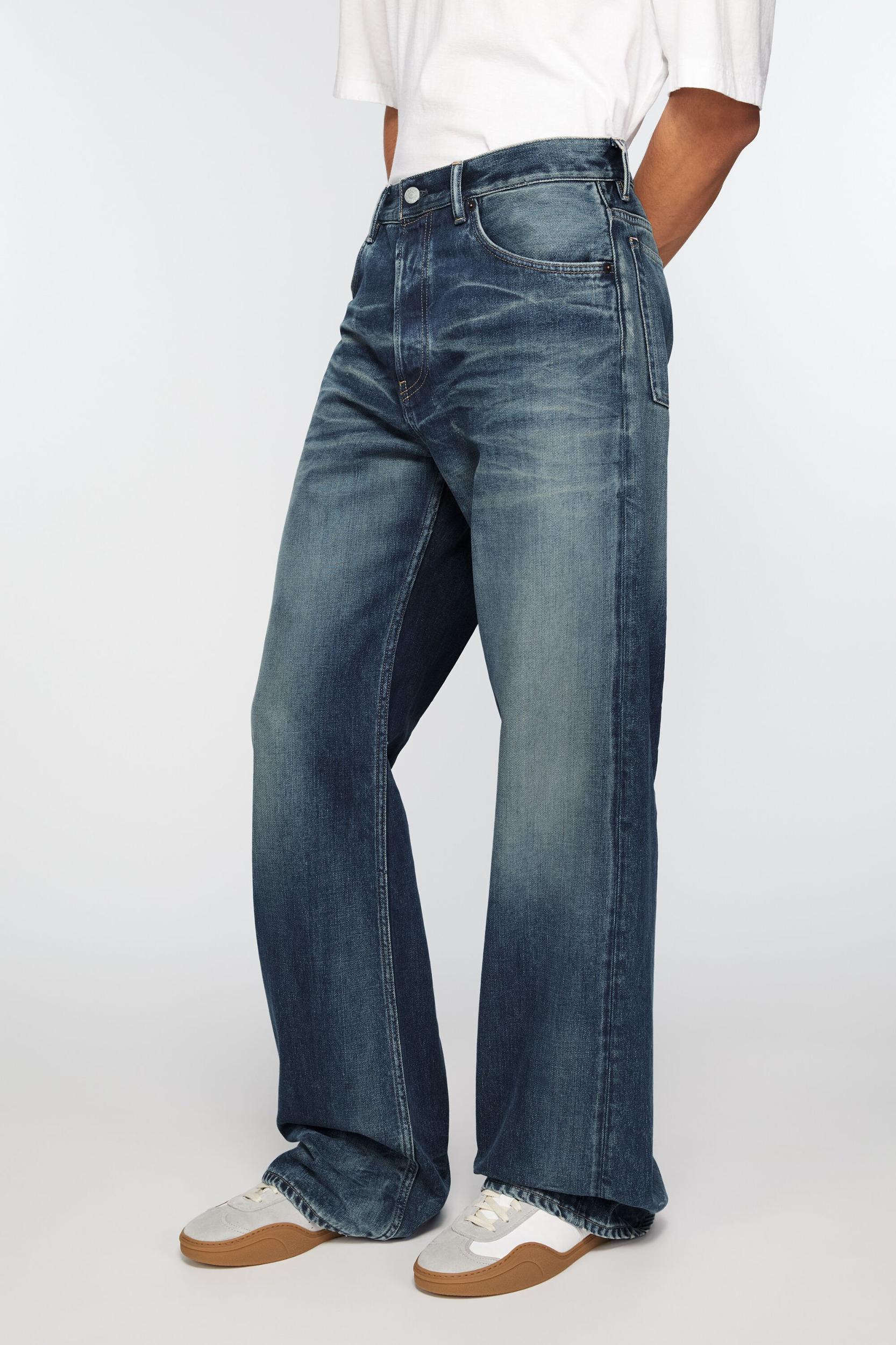 2021 jeans are cut to a regular fit with a mid-rise waist, wide straight legs with a slight flare from the knee, and a long length. Crafted from rigid denim made of organic cotton with a high contrast wash. Acne Studios 2021M Broadway
