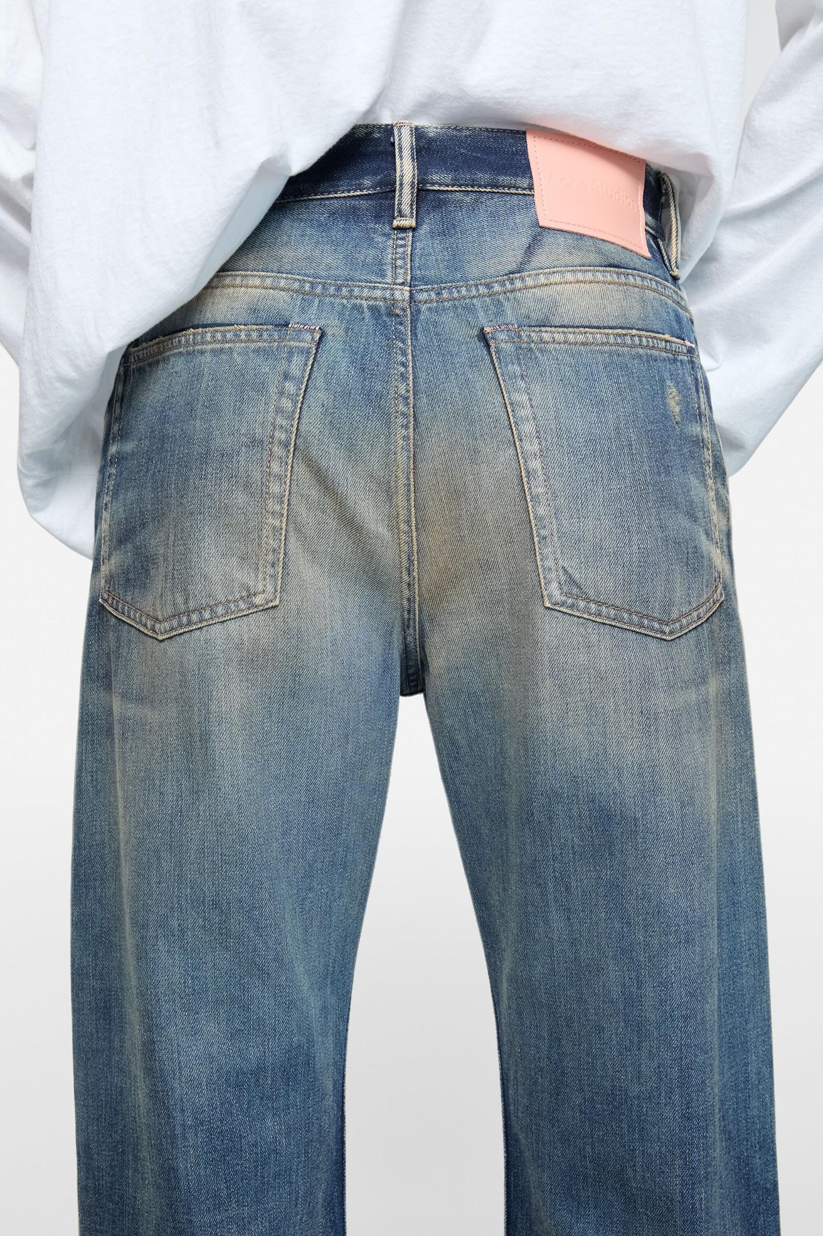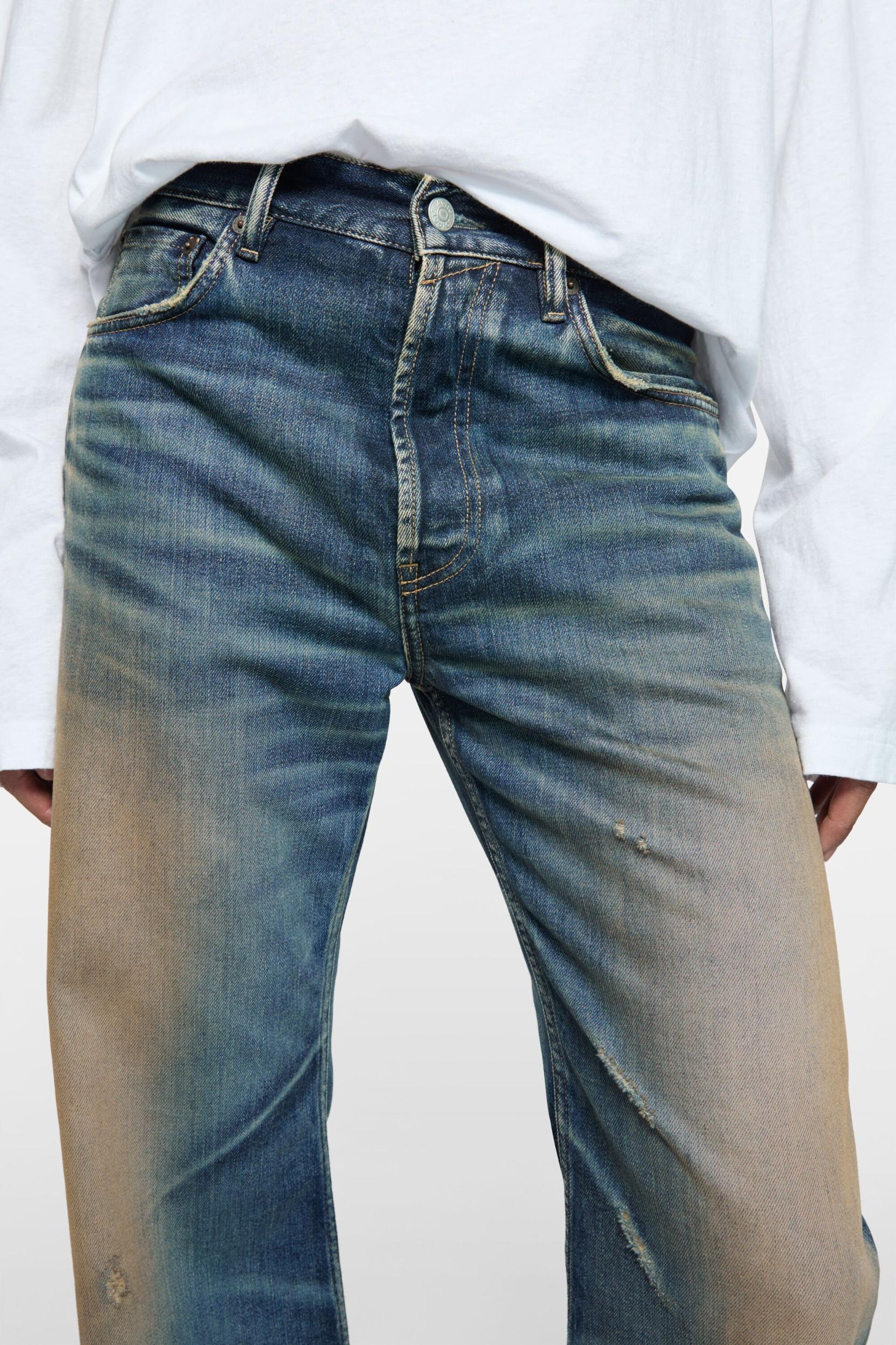 Jeans feature a strong contrast vintage wash with a coated tint on an indigo denim base, crafted from rigid denim made of a cotton blend.The 2021 jeans are cut to a loose fit with mid-waist, wide leg and long length. Acne Studios 2021M Rocka