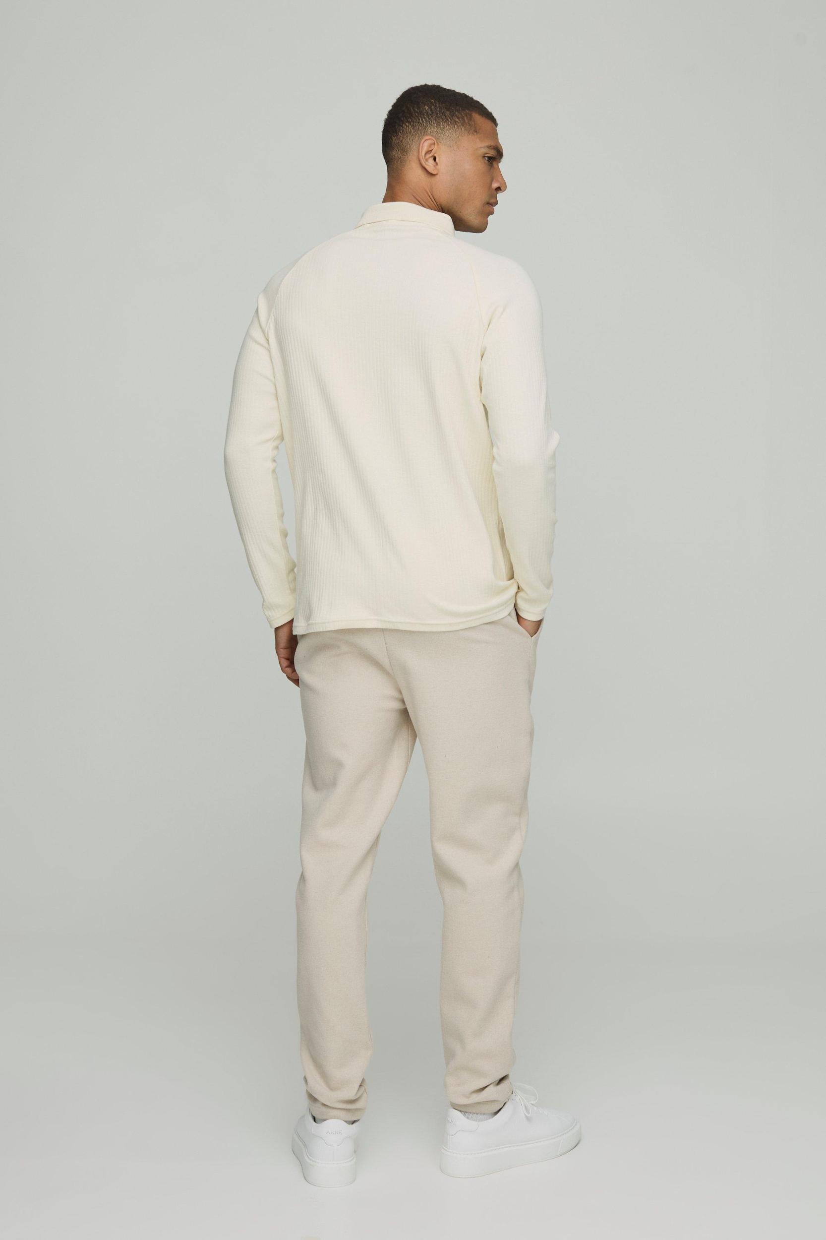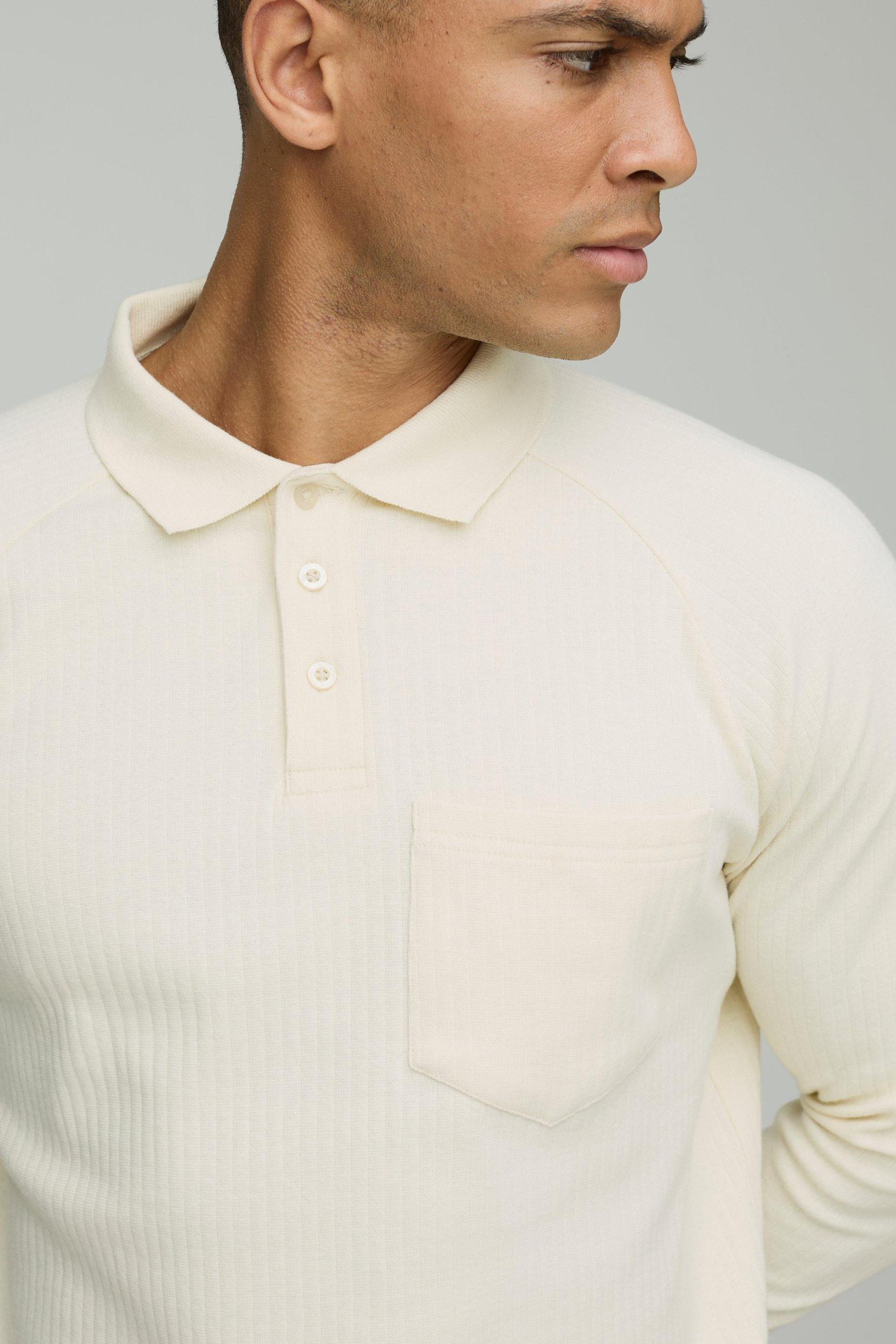 Regular Fit Jersey Rib Button Up Pocket Long Sleeve Polo | boohooMAN USA