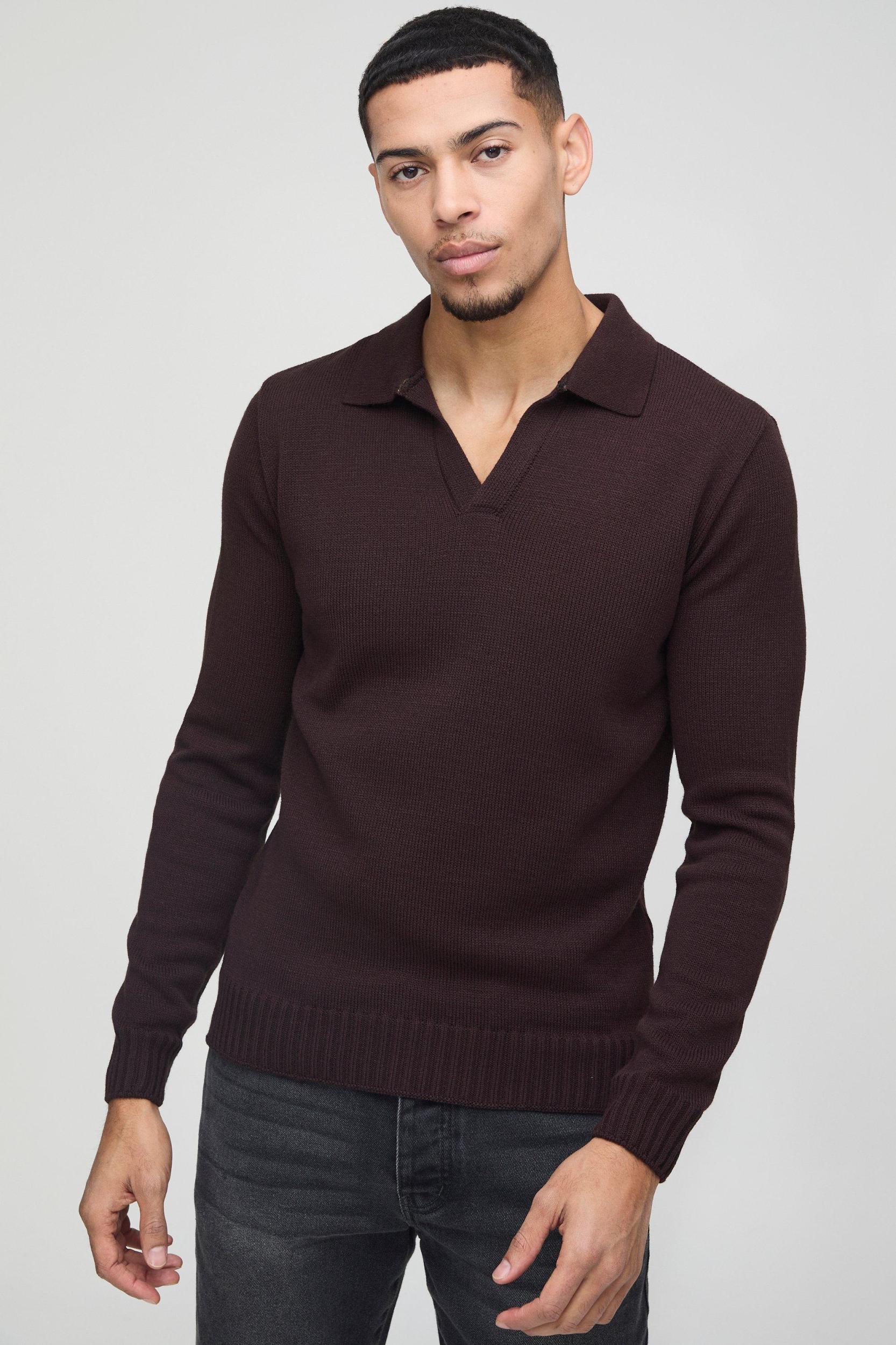 Regular Fit Knitted V-Neck Polo | boohooMAN USA