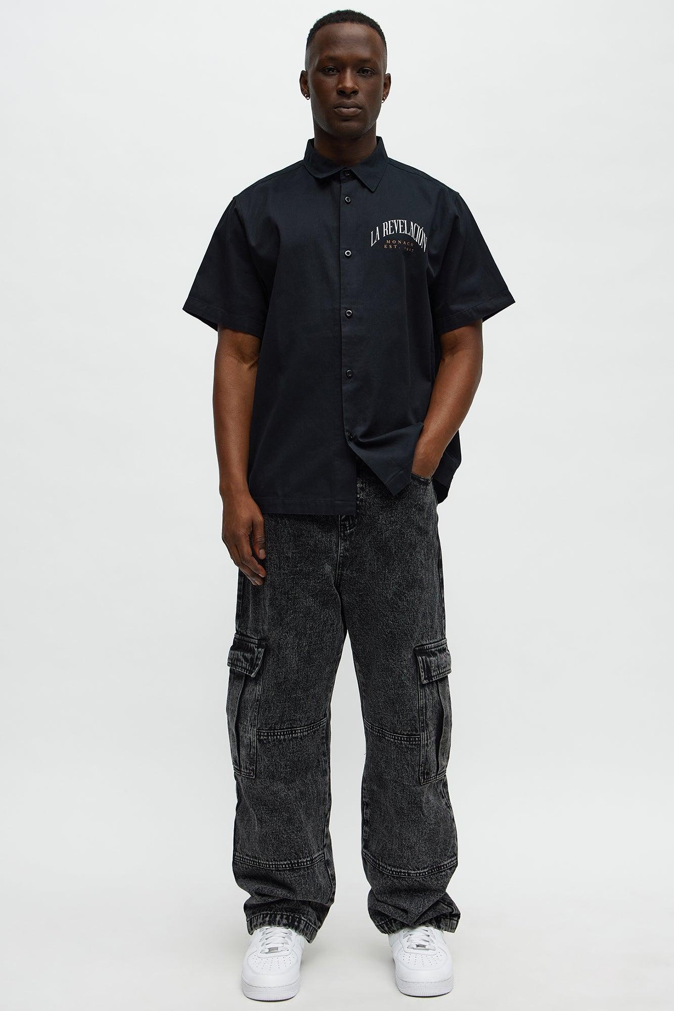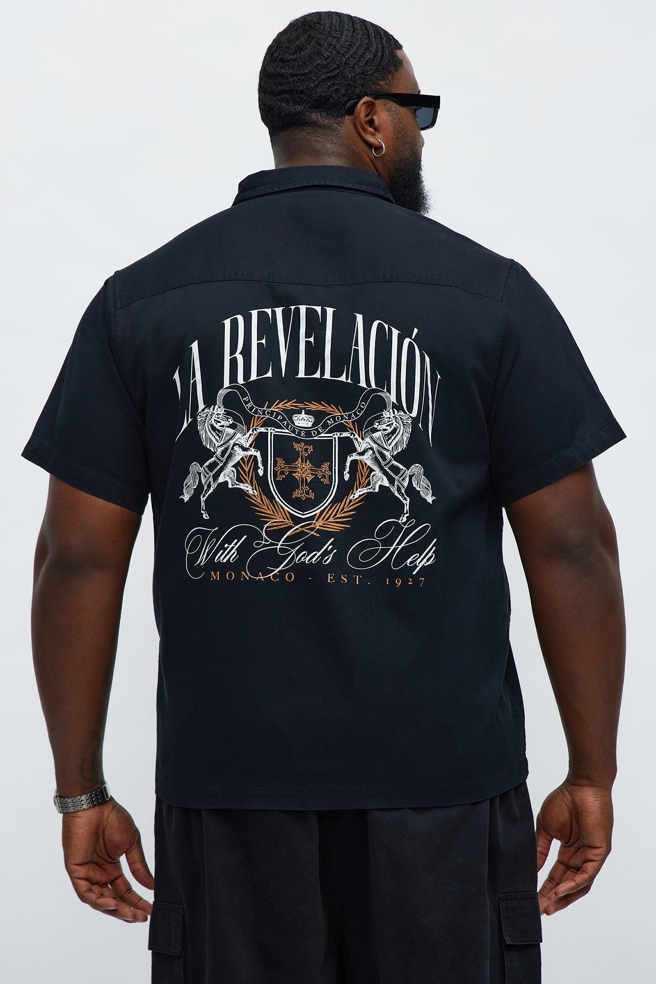 Available In Black And Cream. Fold Down Collar Front Button Closure Cuban Collar Short Sleeves Disclaimer: Due To The Printing Process A Difference In Saturation May Occur. Each Garment Is Unique. 100% Cotton Imported