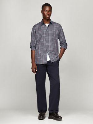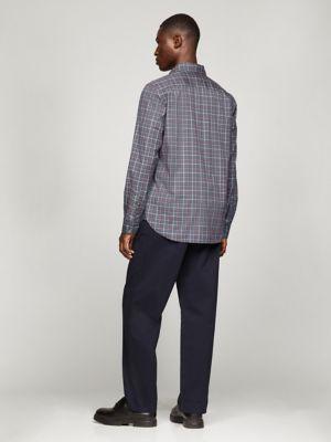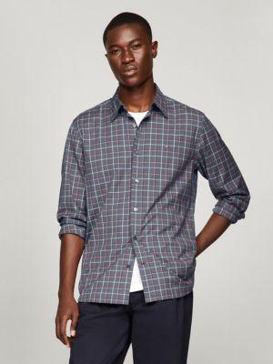 Tommy Hilfiger men's shirt. Our cotton poplin shirt has the crisp texture you expect, softened with an enzyme wash for a subtly smoother feel and looser drape. This version in check pairs well with chinos and jeans—making it an easy go-to for the office and beyond.
