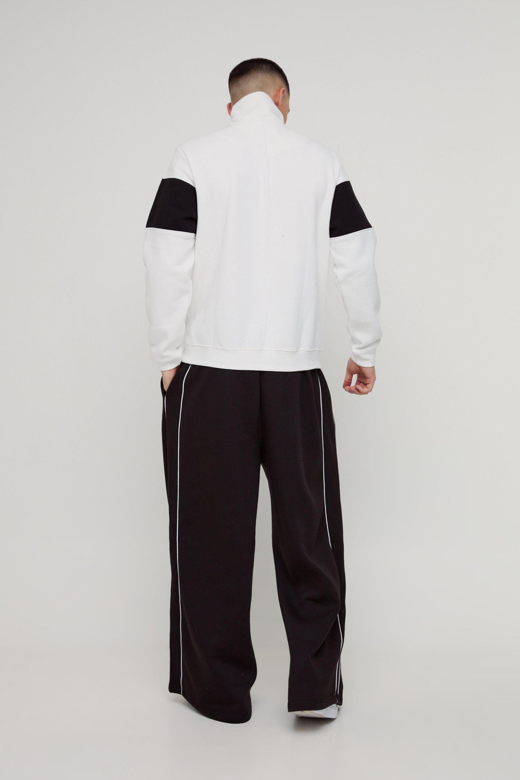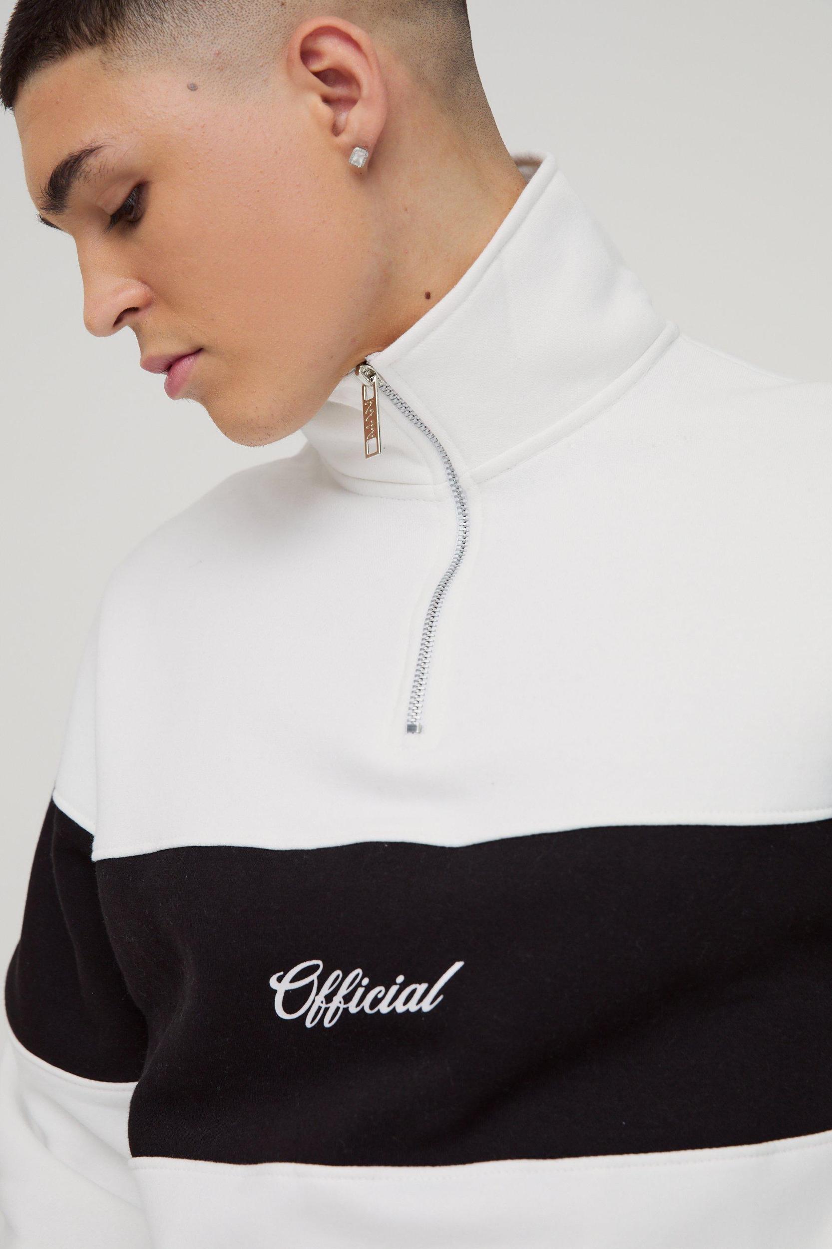 A go-to top layer for every day of the week. Need a wardrobe staple that's versatile and reliable? A basic sweatshirt is the ultimate easy layer for warmth, comfort and style. Snuggle up with tracksuit sweatpants for a lazy Sunday in, or level up your casual 'fit by pairing a plain polo with baggy jeans and sneakers, perfect for Saturday afternoon spectating. Or if you're out to impress, try a sleek maroon sweater with pleated pants, dark overcoat and black Chelsea shoes. Whatever your style, with a few plain sweatshirts in different colours you'll always have a stylish top layer ready to go. Style: Plain SweatshirtDesign: Colour BlockFabric: BrushbackLength: RegularNeckline: Funnel NeckSleeve Length: Long Sleeve