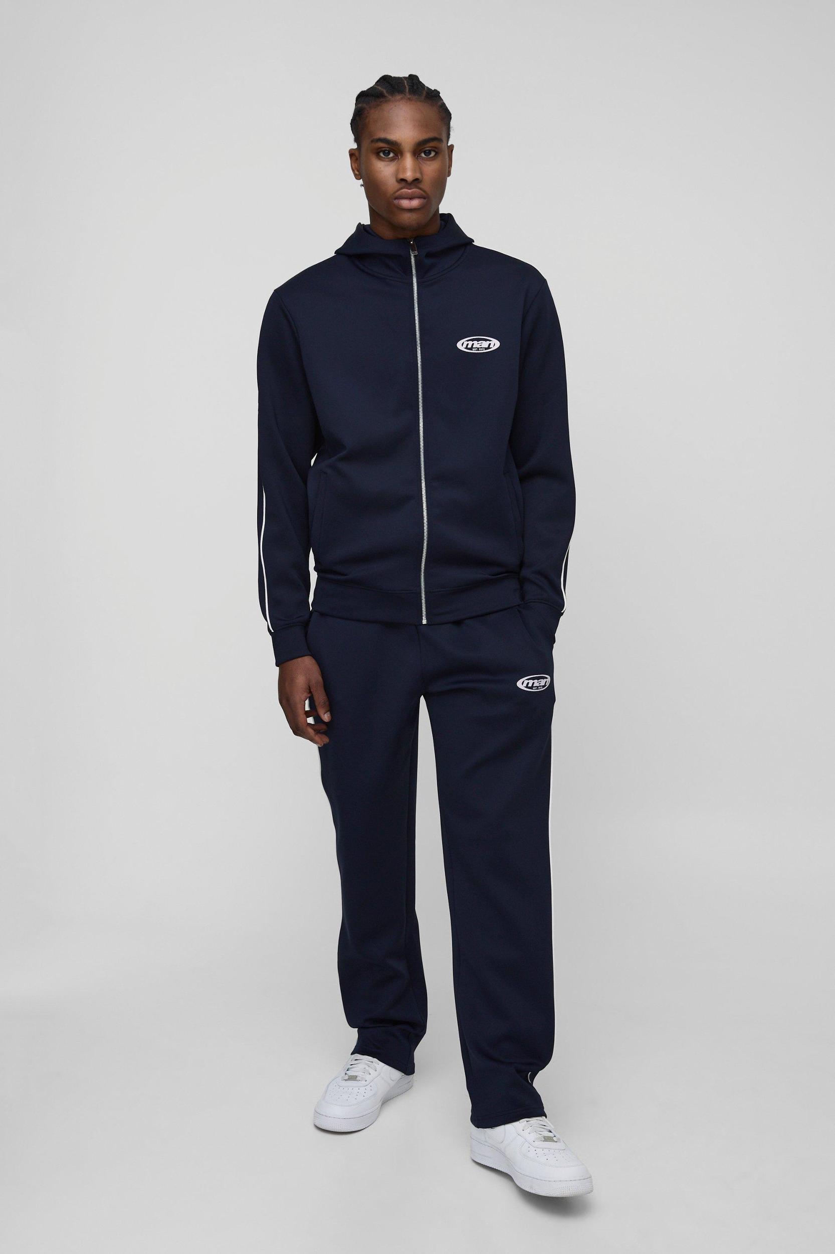 Regular Fit Man Zip Through Funnel Neck Tricot Tracksuit | boohooMAN USA