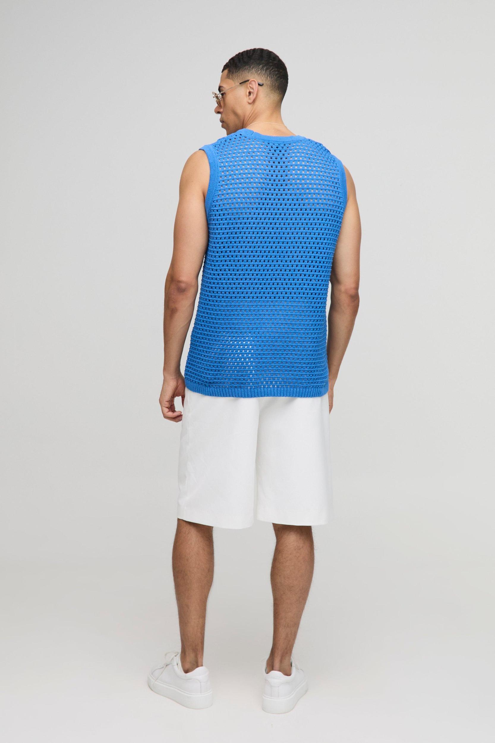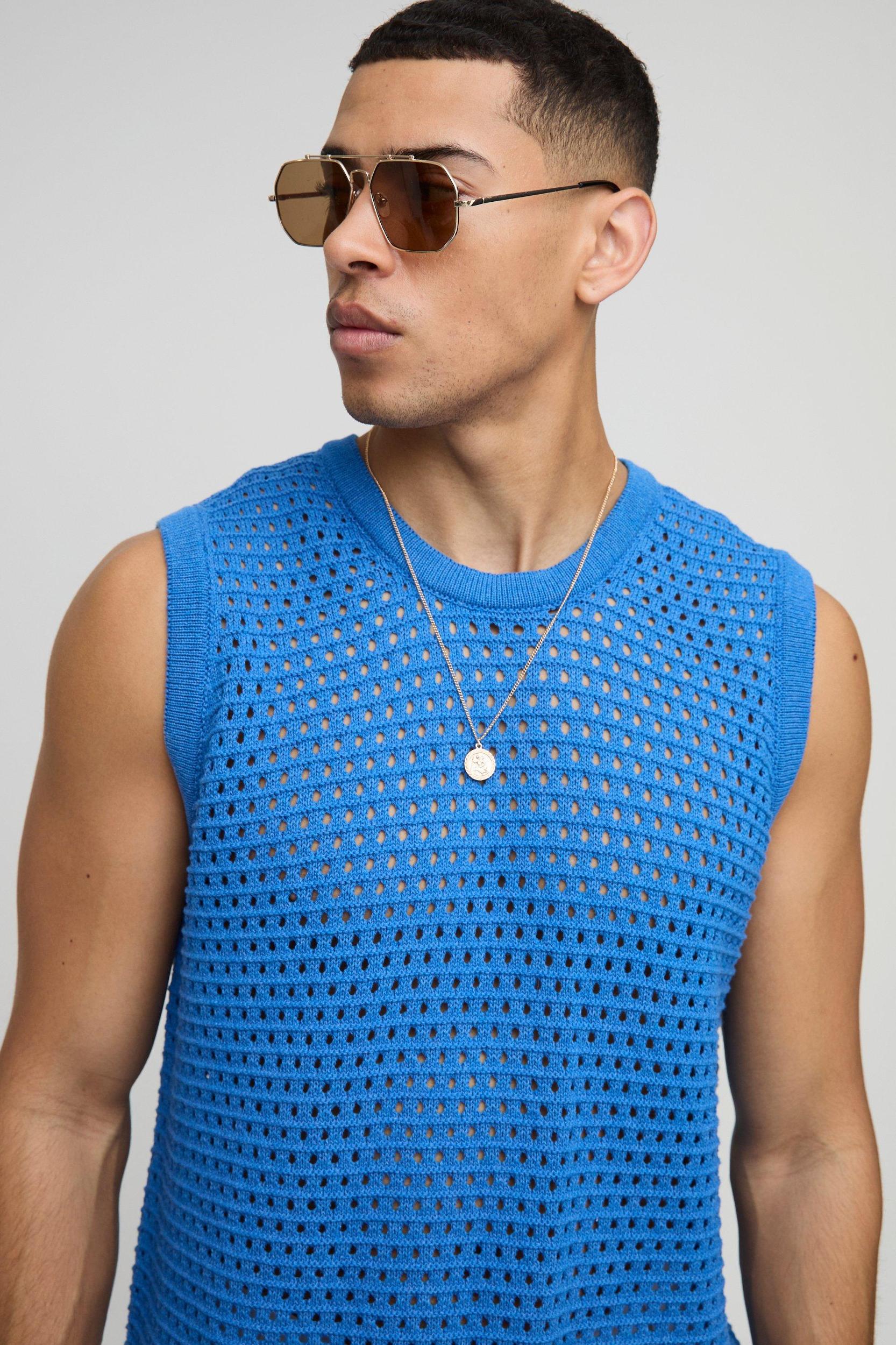 Mens Cotton Openwork Crochet Knit Vest