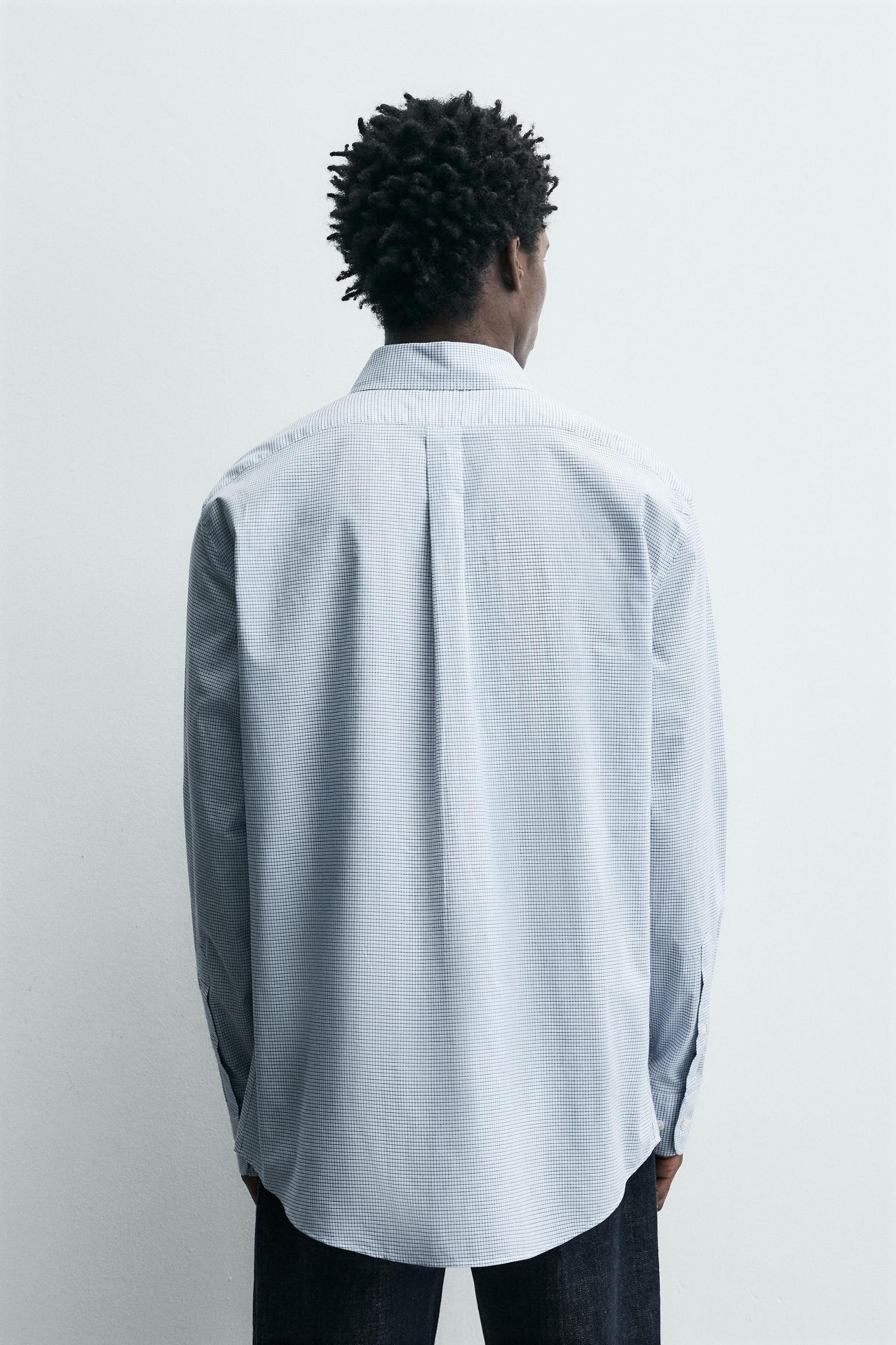 Regular fit shirt made of cotton fabric. Button-down collar and long sleeves with buttoned cuffs. Front button closure.