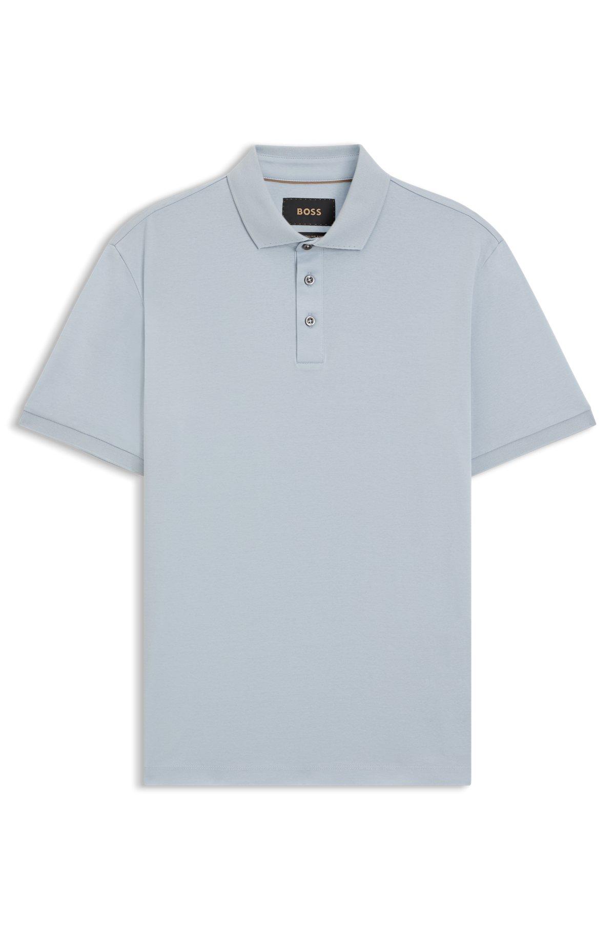 With a classic straight fit, this BOSS Menswear polo shirt is crafted in Italian cotton with a super-soft mercerized finish. Mother-of-pearl buttons.