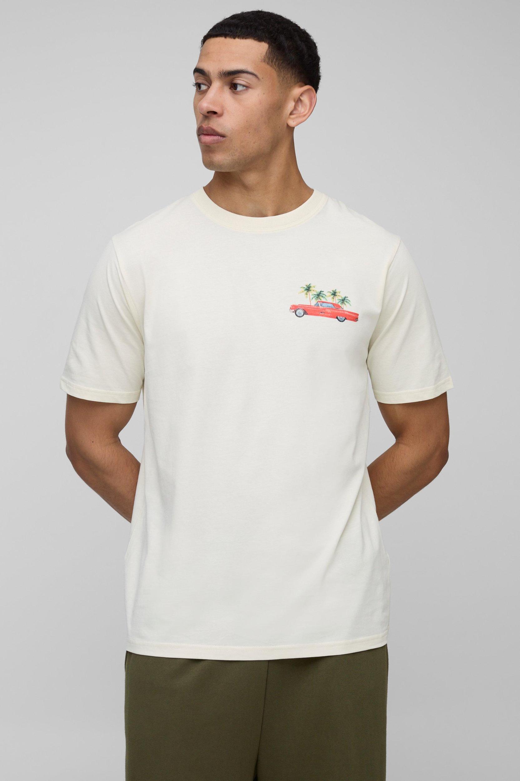 Regular Fit Regular Fit Palm Tree Vintage Car Print Tree T-Shirt | boohooMAN USA