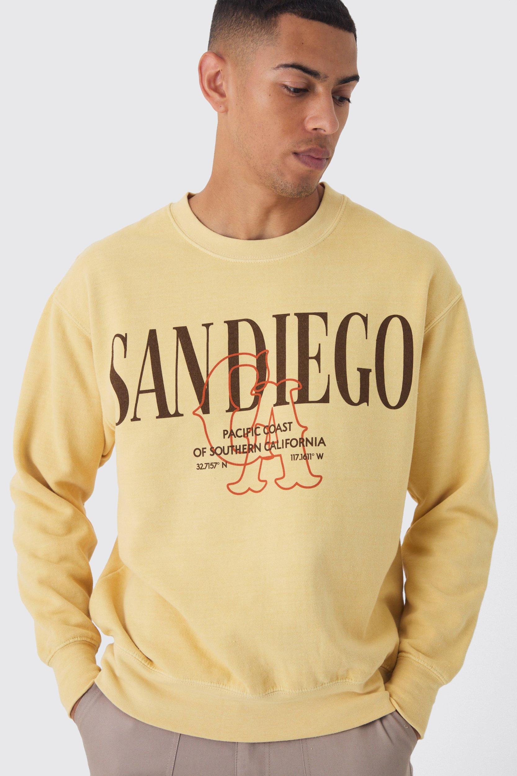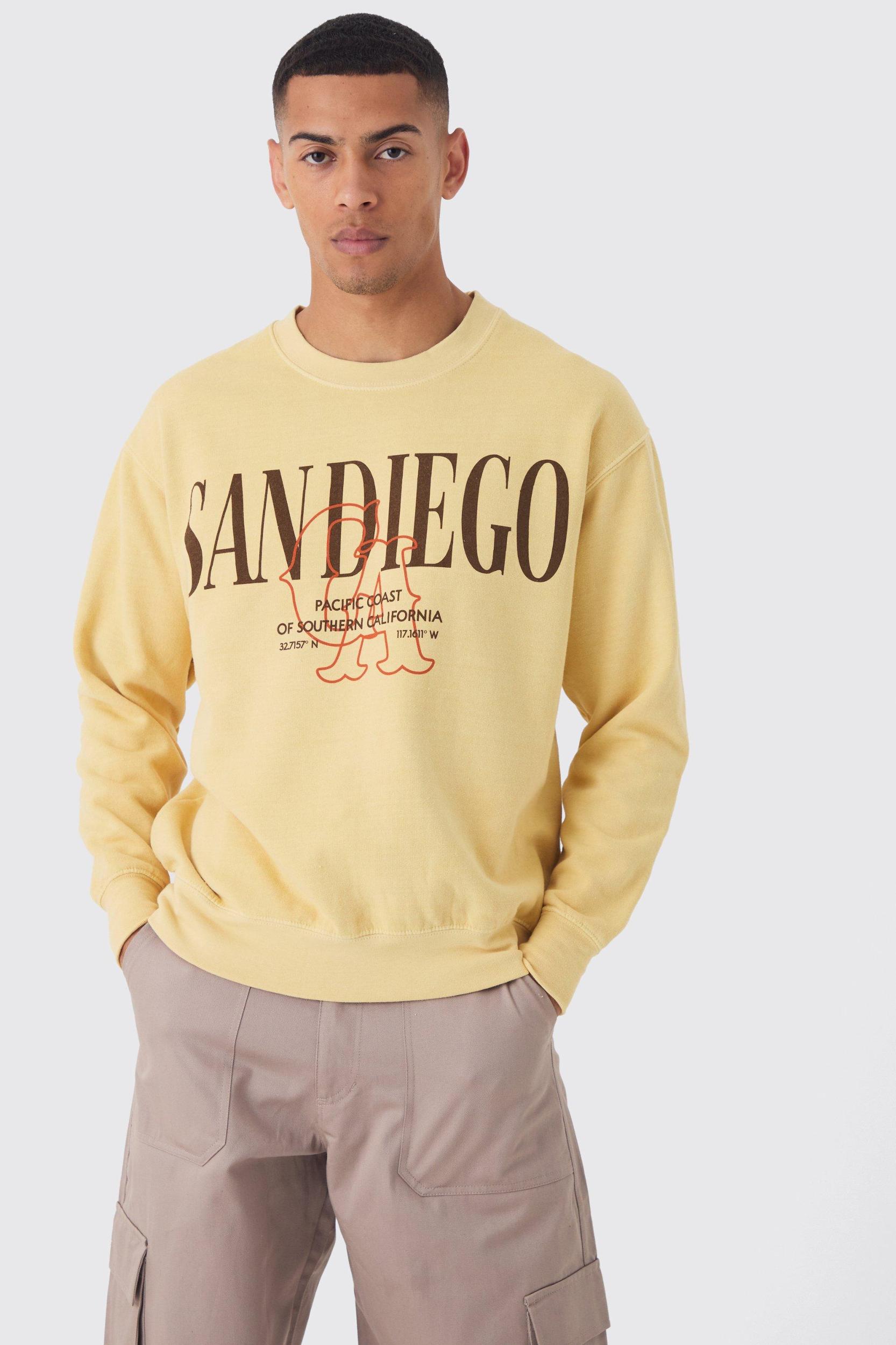 Regular Fit San Diego Graphic Washed Sweatshirt | boohooMAN USA