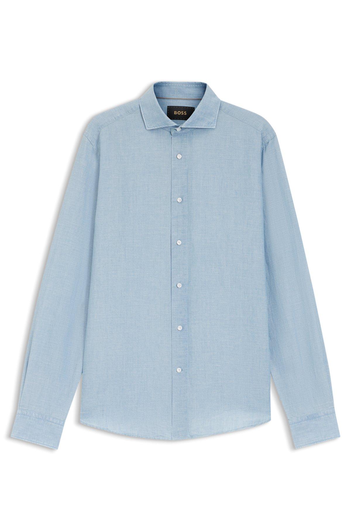 Regular-fit shirt in Italian-made linen and cotton