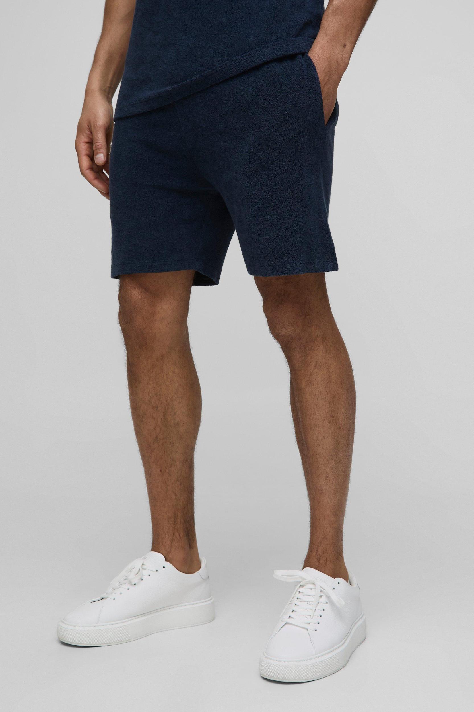 Regular Fit Slim Fit Mid Length Towelling Shorts | boohooMAN USA