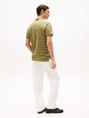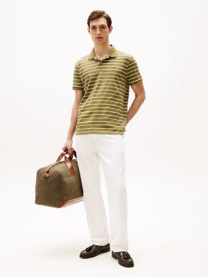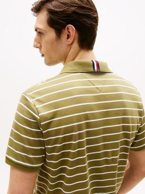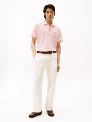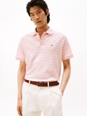 Tommy Hilfiger men's polo. This polo shirt is crafted from pure cotton with an enzyme-washed finish, lending a smooth feel and sleek look to the traditional silhouette. This version boasts horizontal stripes to add some pattern to your wardrobe.