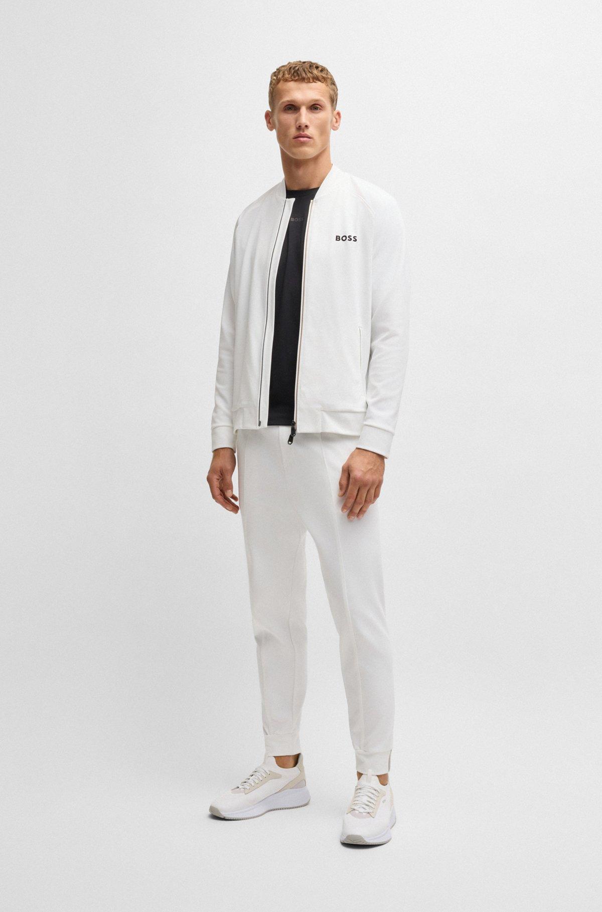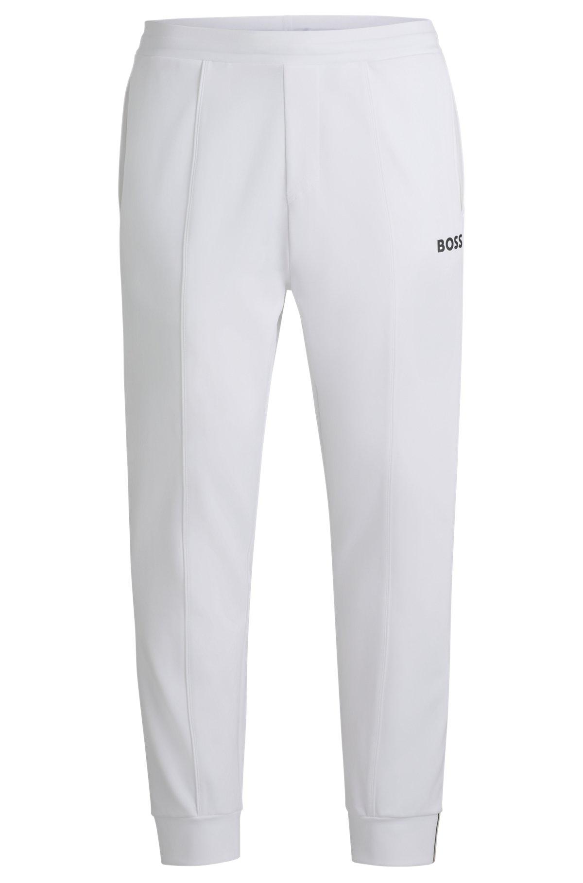 Signature trousers with a comfort waistband and logo detail by BOSS Menswear. This straight-fit pair is designed in stretch gabardine with moisture management. Part of the dynamic BOSS x Matteo Berrettini capsule collection, co-created by the Italian professional tennis player.