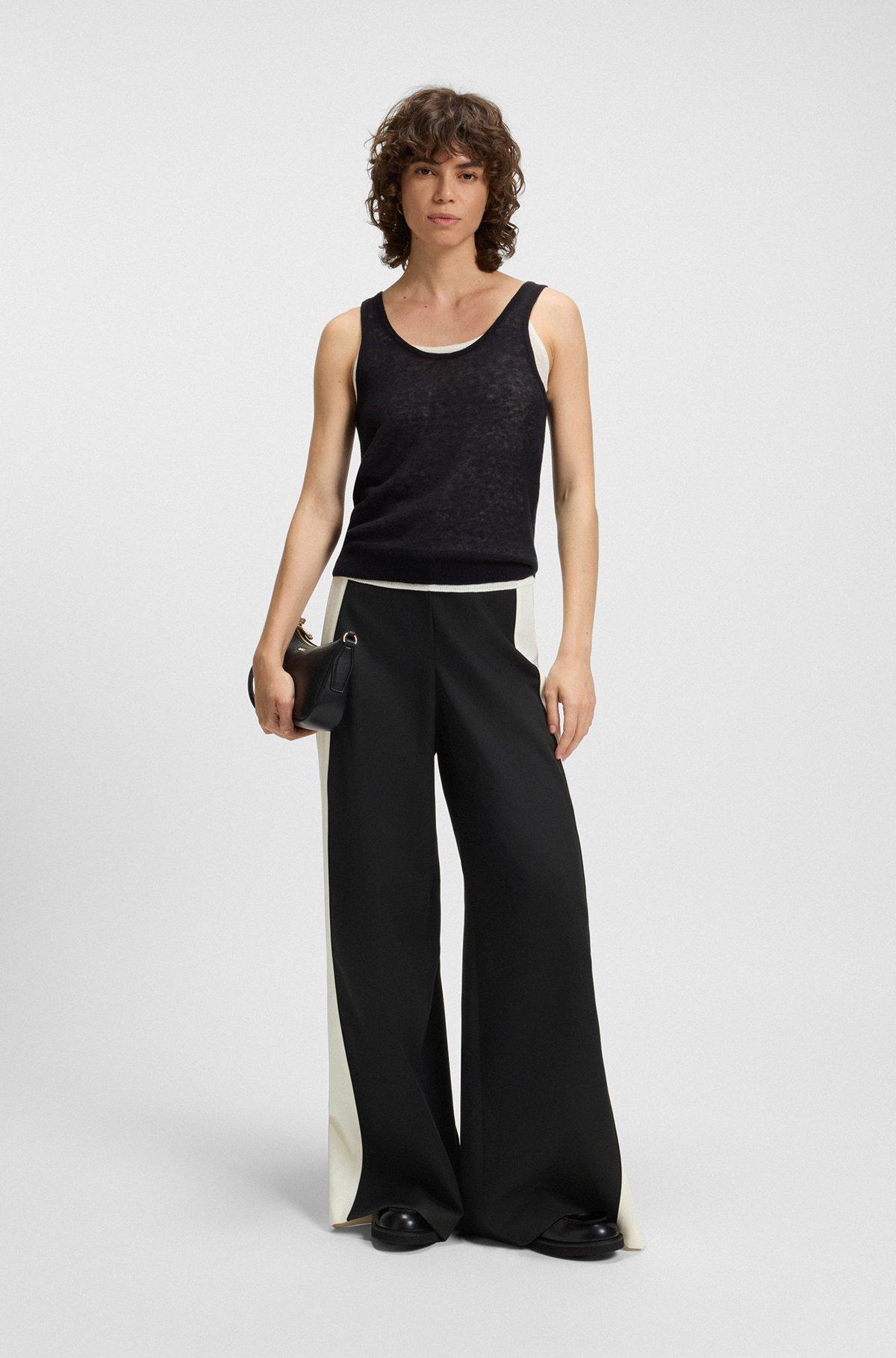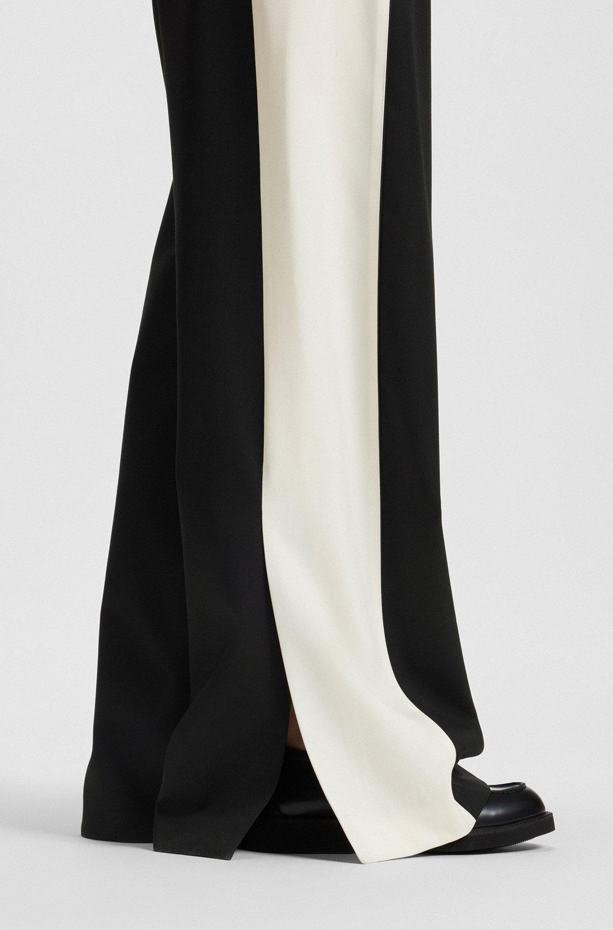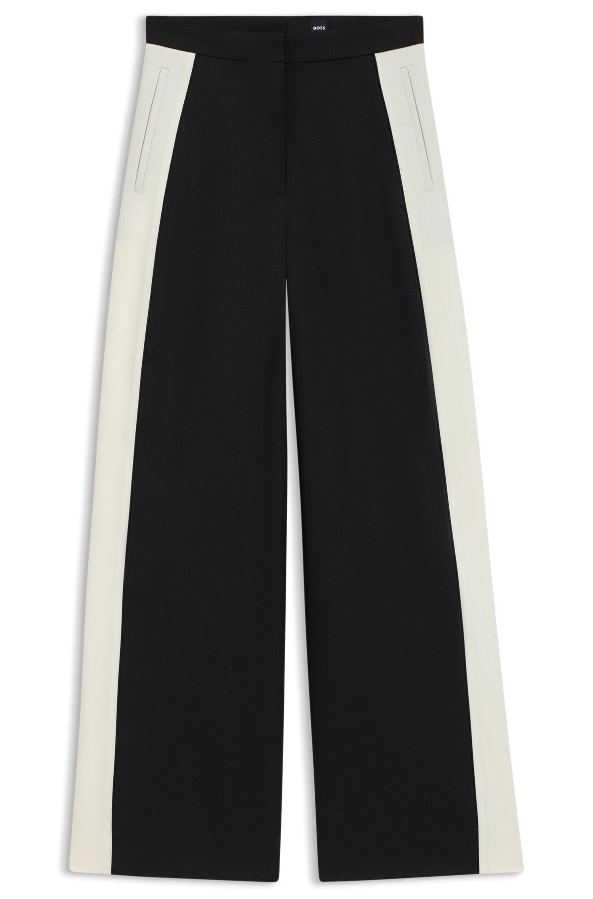 Crafted in virgin-wool twill, these BOSS Womenswear trousers feature statement color-blocking at the side seams. Straight fit with wide leg. Extra long length