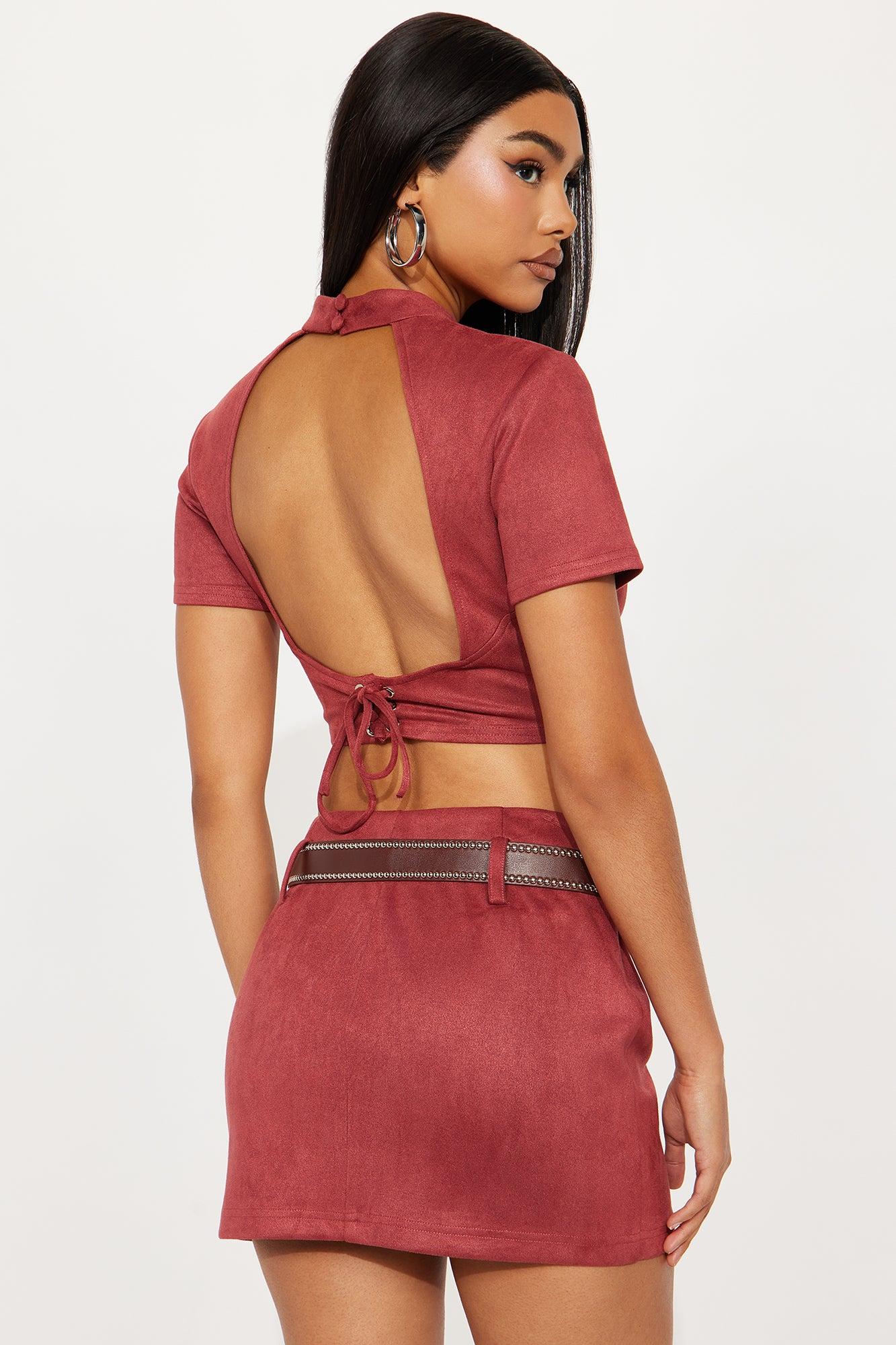 Reina Faux Suede Belted Mini Skirt Set - Brick Red Female