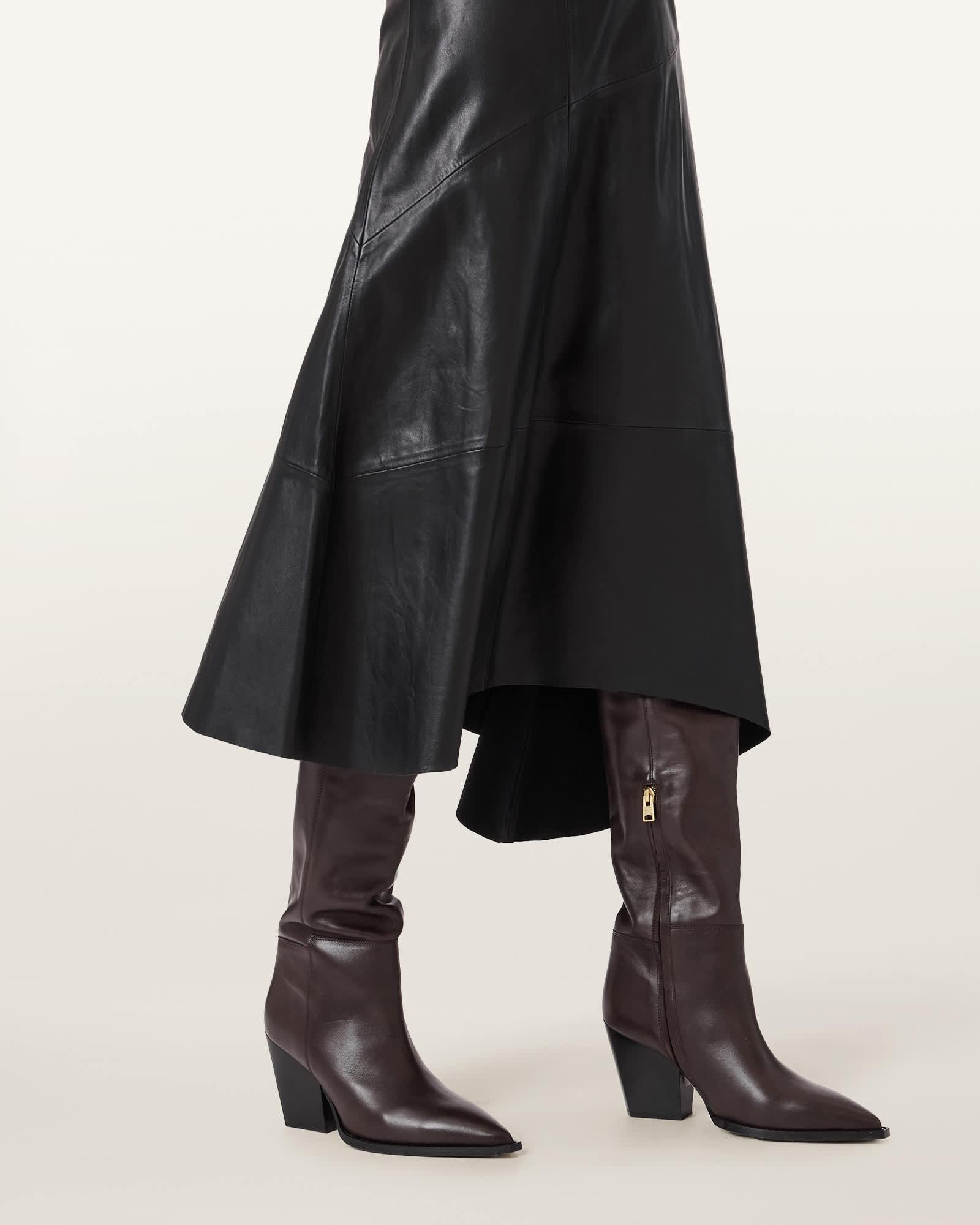 Reina Leather Zip Boots Brown | ALLSAINTS US
