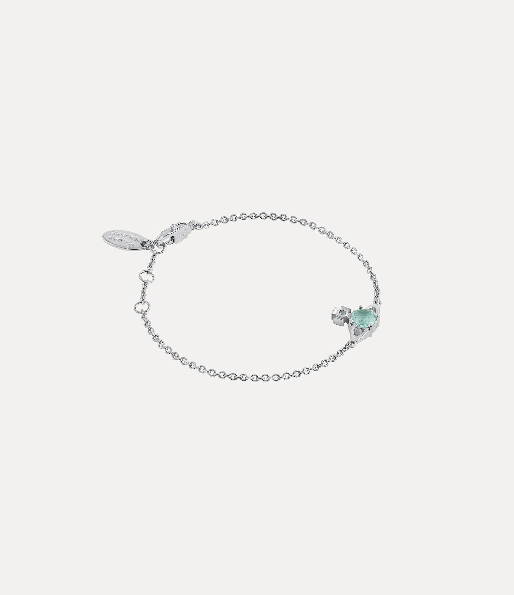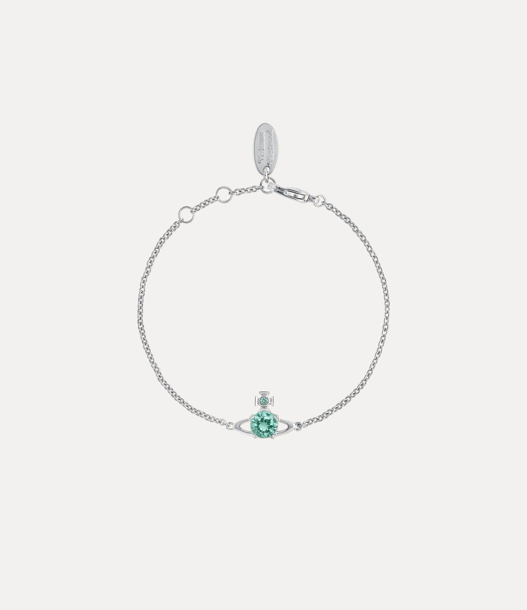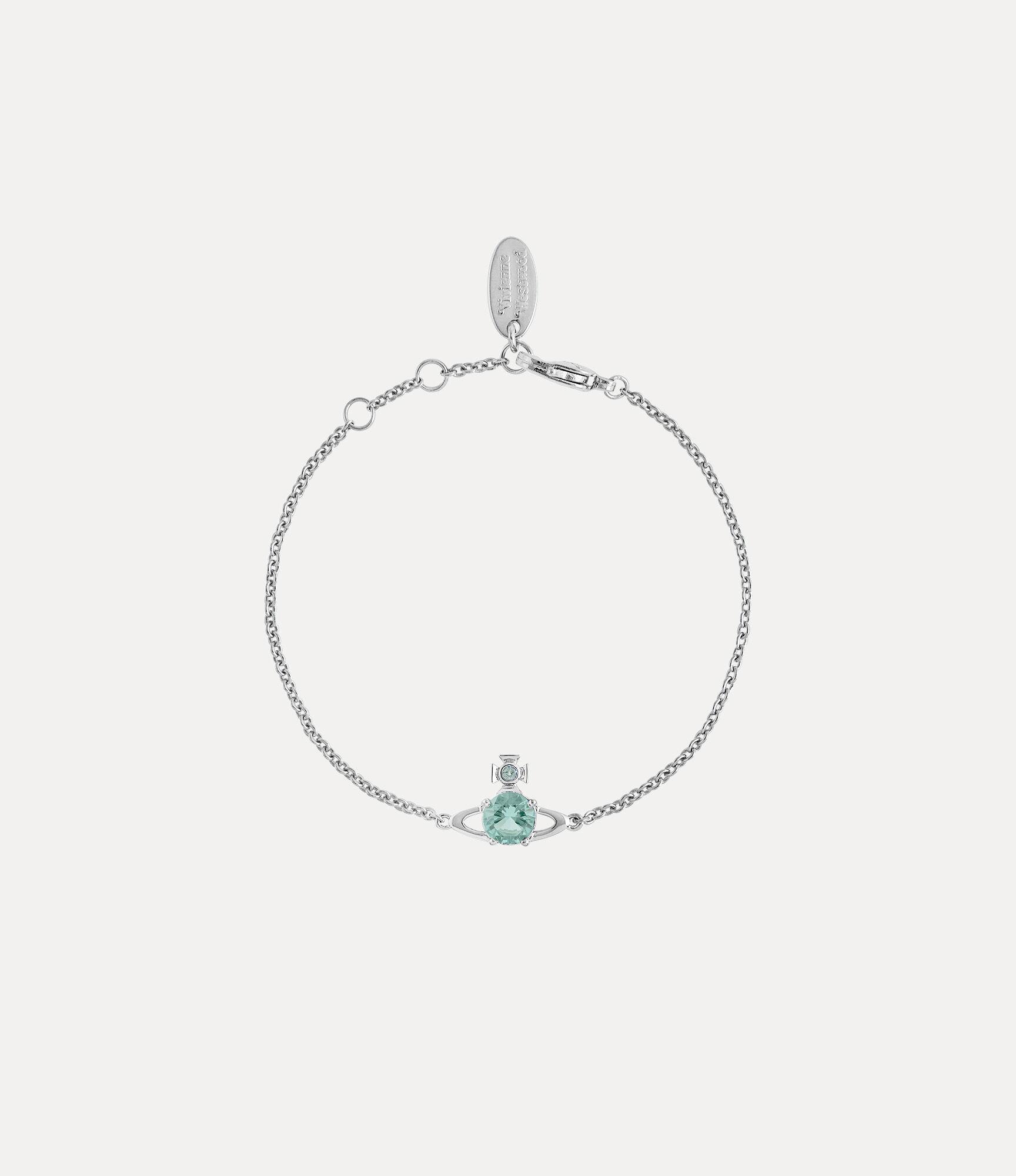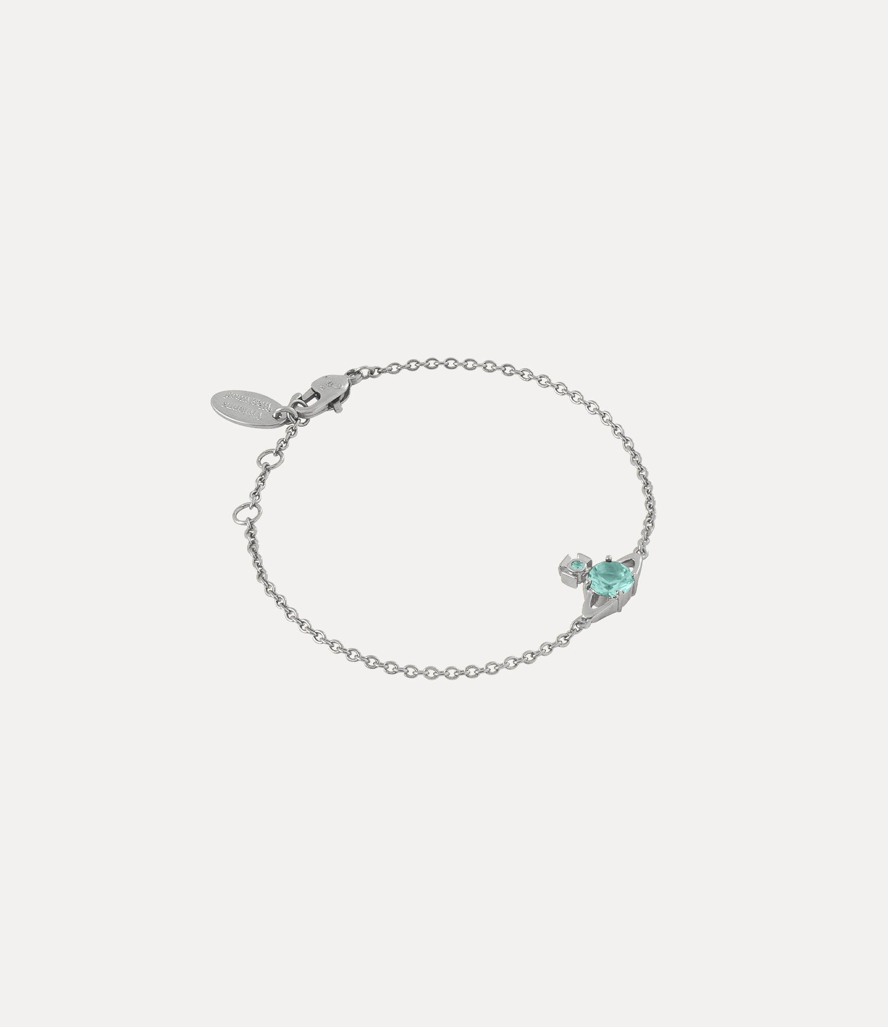 Our Reina Small bracelet features a delicate trace chain with a two-dimensional orb in the centre, which symbolises tradition, encircled by the celestial rings of Saturn, symbolising the future. The piece offers delicate turquoise crystal details, complete with a glistening silver-tone finish.