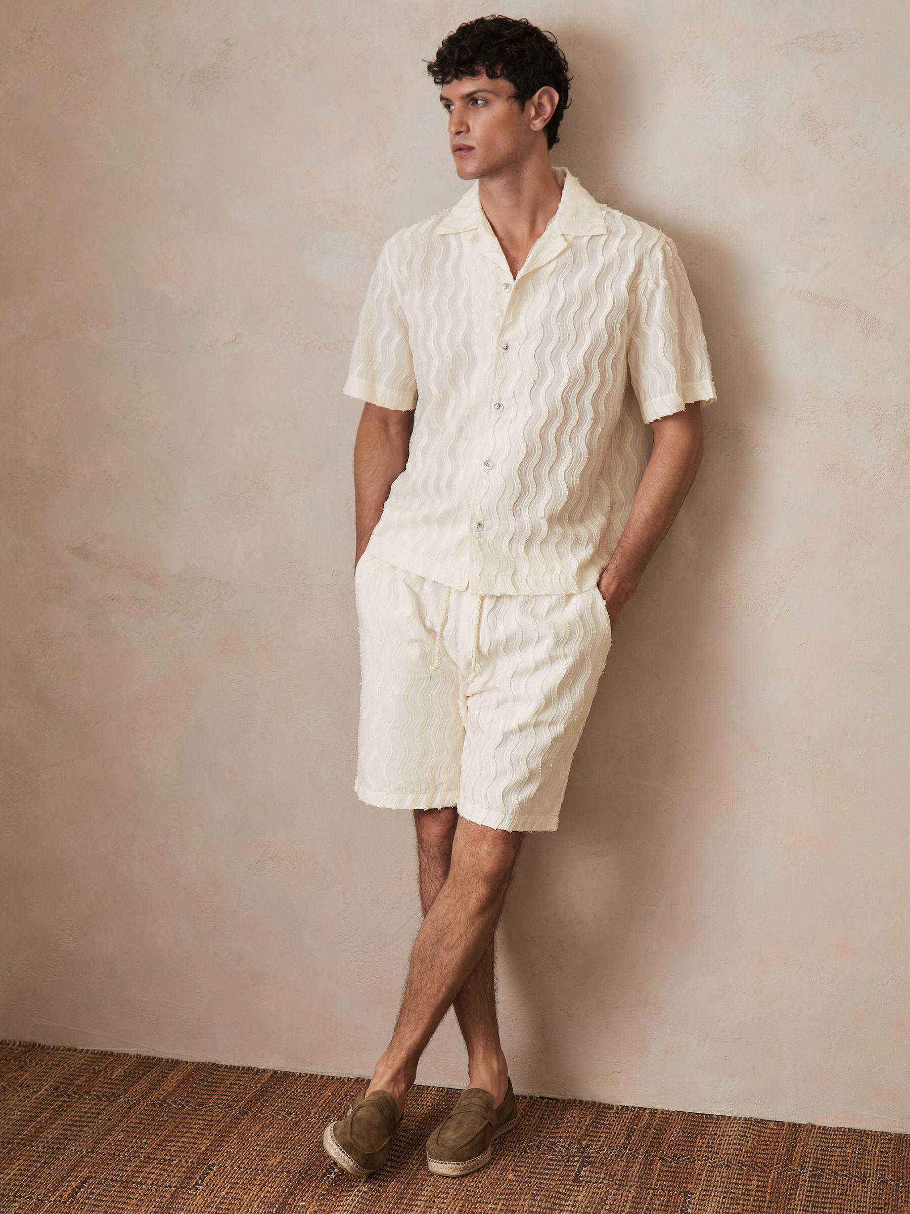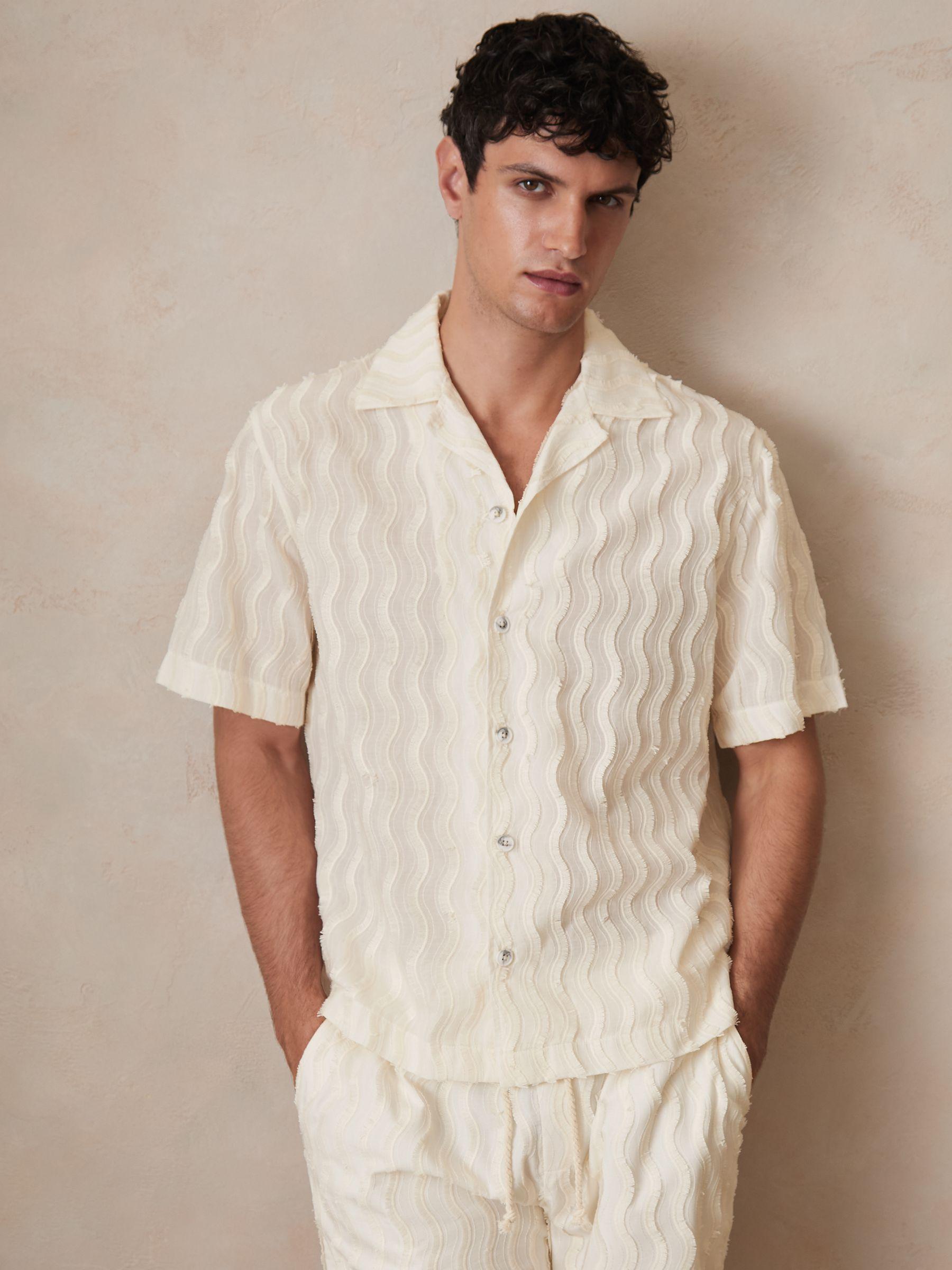 A fringed wave pattern lends the Mastella shirt a distinctive texture and effortless, beach-ready appeal. Lightweight and easy to wear, it’s finished with a classic Cuban collar and short sleeves.