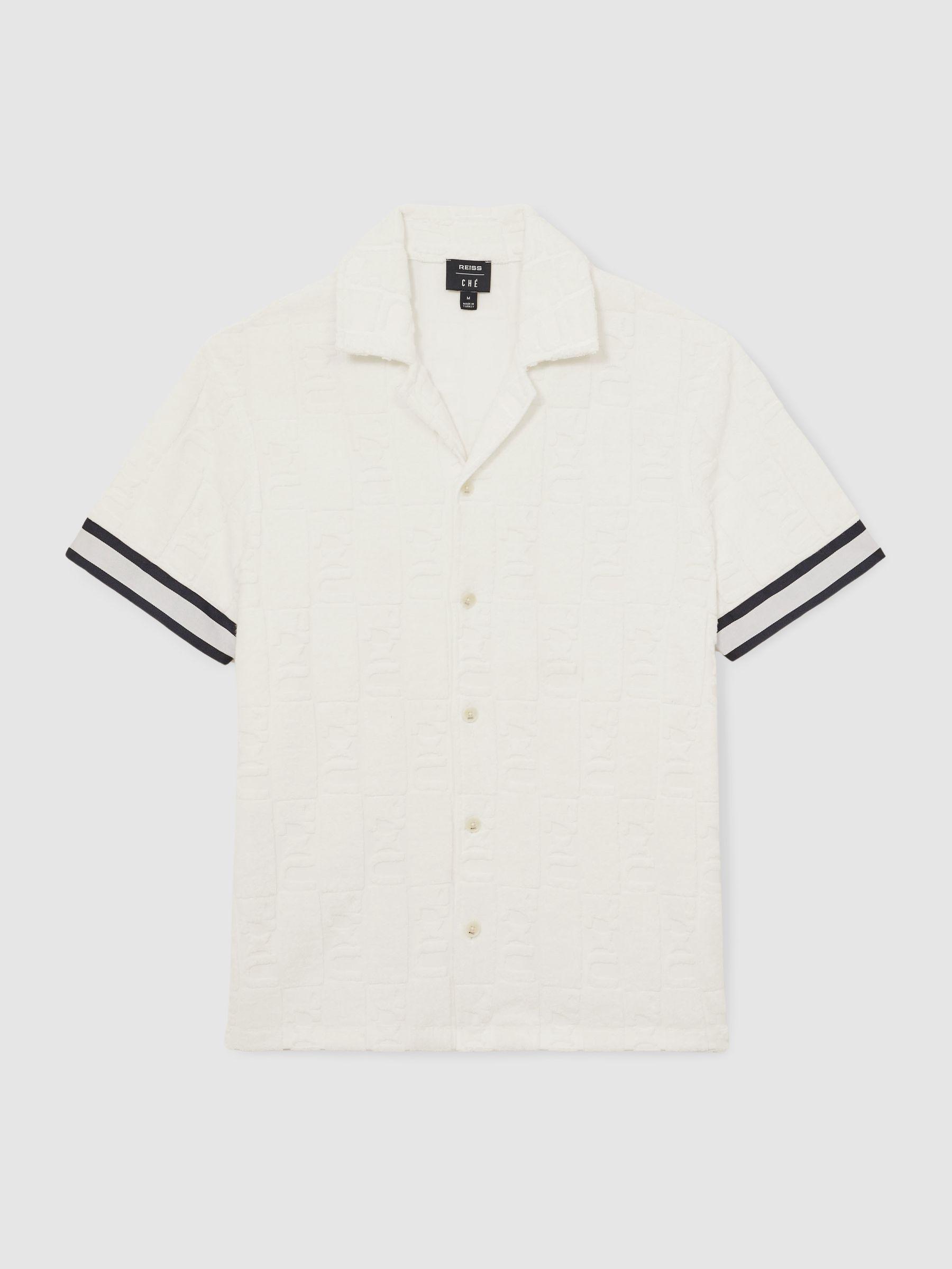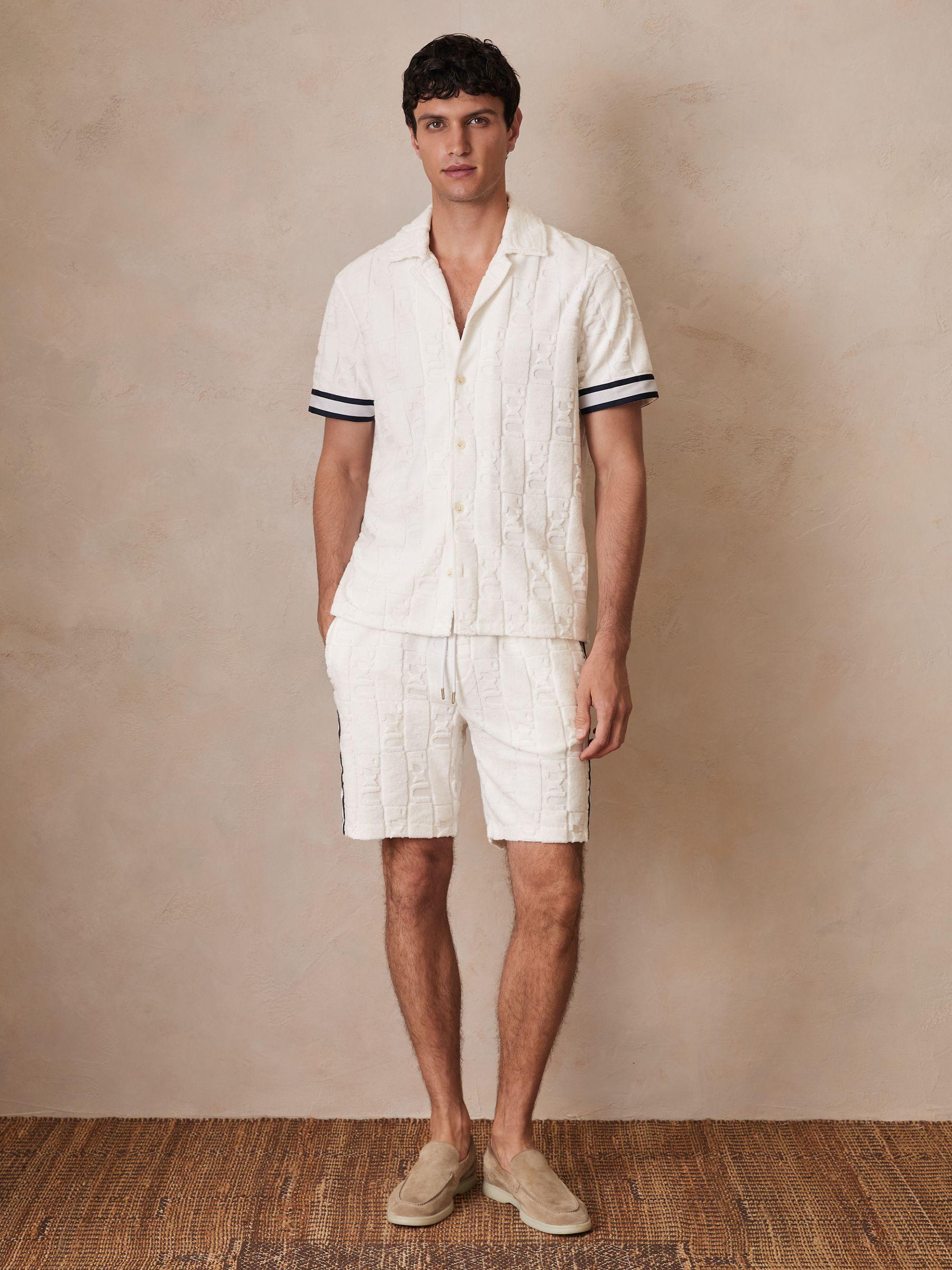 Crafted from soft towelling, the Kala shirt channels a summer-inspired feel, enhanced by a tonal monogram jacquard cut into the pile. Striped trim cuffs add a sporty edge, while the Cuban collar reinforces its laid-back appeal.