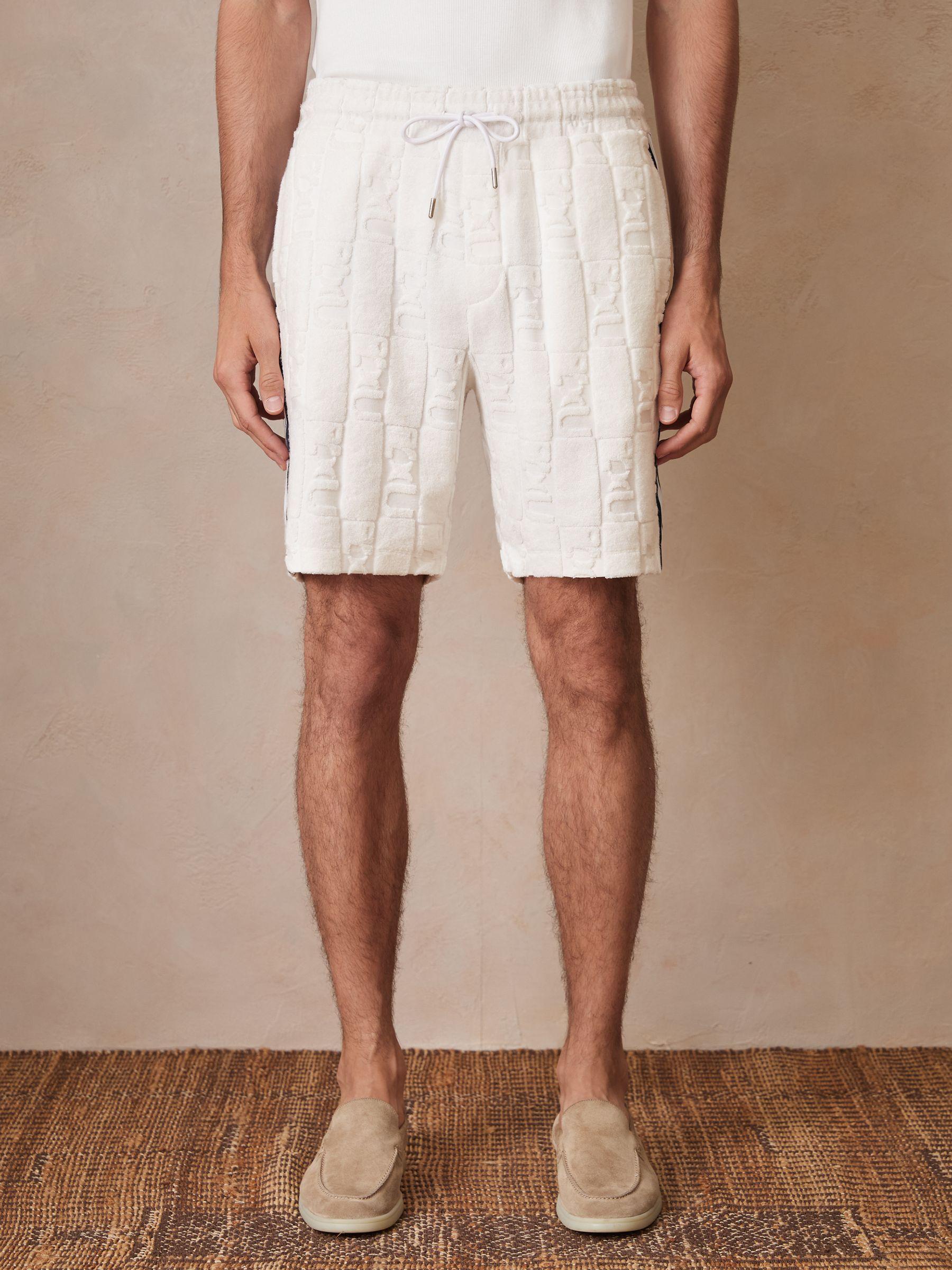 Crafted from soft towelling, the Salina shorts channel a summer-inspired feel, elevated by a tonal monogram jacquard cut into the pile. A grosgrain side stripe lends a sporty touch, while the drawstring waist ensures an adjustable fit.
