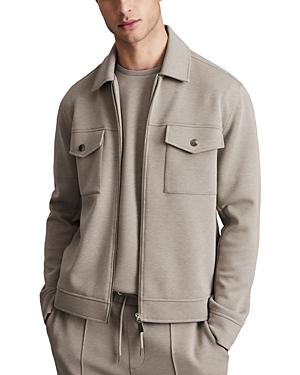 Reiss Medina jacket features a classic collar, four pockets, and a front zip closure. This woven style is designed with comfortable stretch for an effortless fit. Classic collar Long sleeves Chest button-through flap pockets Side slip pockets Front zip closure 79% polyester/16% viscose/5% elastane Machine wash Imported SIZE & FIT About 26 from shoulder to hem Model measurements: 62 tall, 40 chest, 31 waist Model is wearing a US size Medium. Mens Modern Coll & Outer - Modern Collections > Reiss > Saks Fifth Avenue > Barneys. Reiss. Color: Taupe. Size: Large.