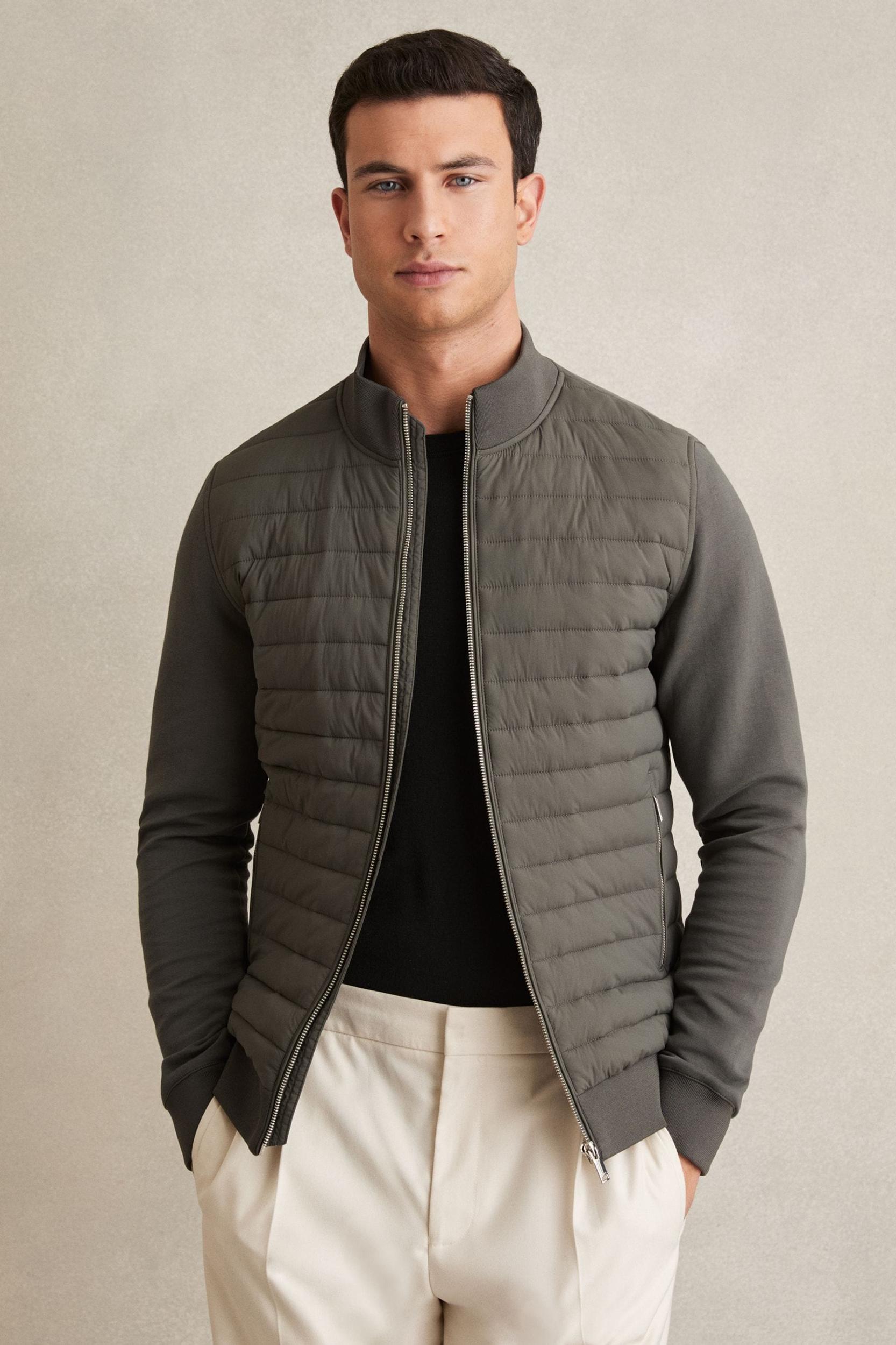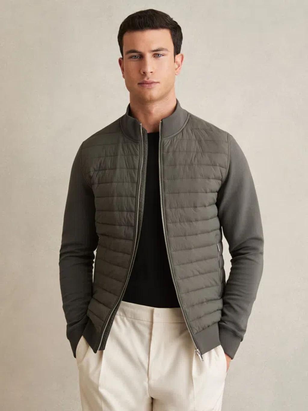 Shop Reiss Sage Freddie Hybrid Quilt And Knit Zip-through Jacket from 800+ stores, starting at $142. The Freddie hybrid jacket has a quilted front and a cotton-rich back and arms for a sleek fit. A funnel neckline, zip-front closure, and zipped pockets feature. Quilted front panel Cotton-blend arms and reverse Funnel neckline Zip-front closure Zipped side pockets