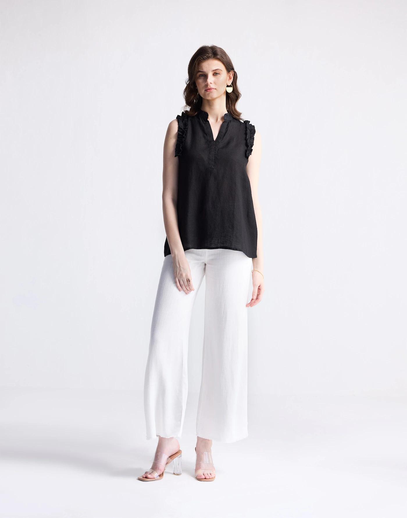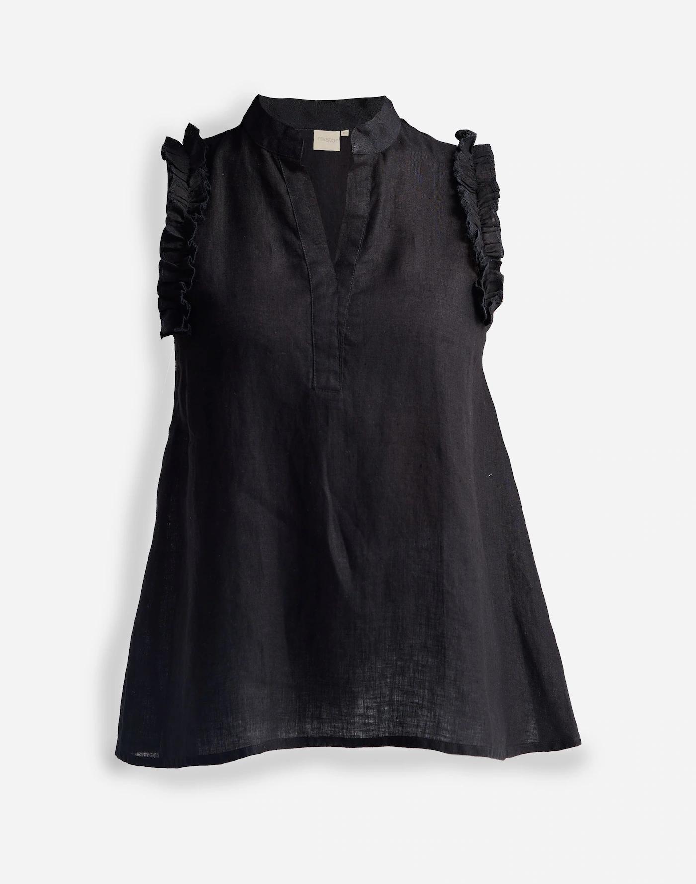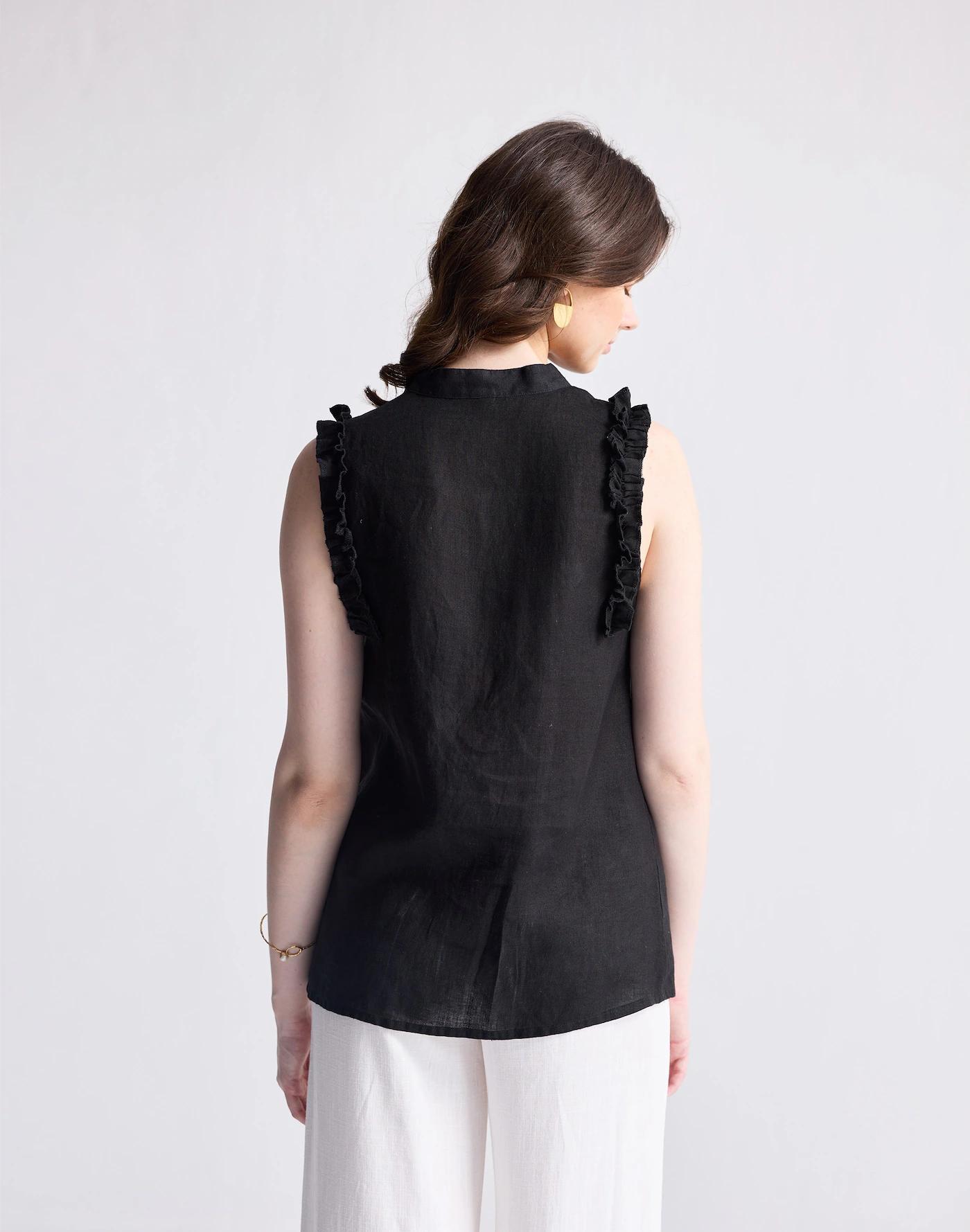 Reistor® Sleeveless 100% Hemp Top with Ruffles in Black