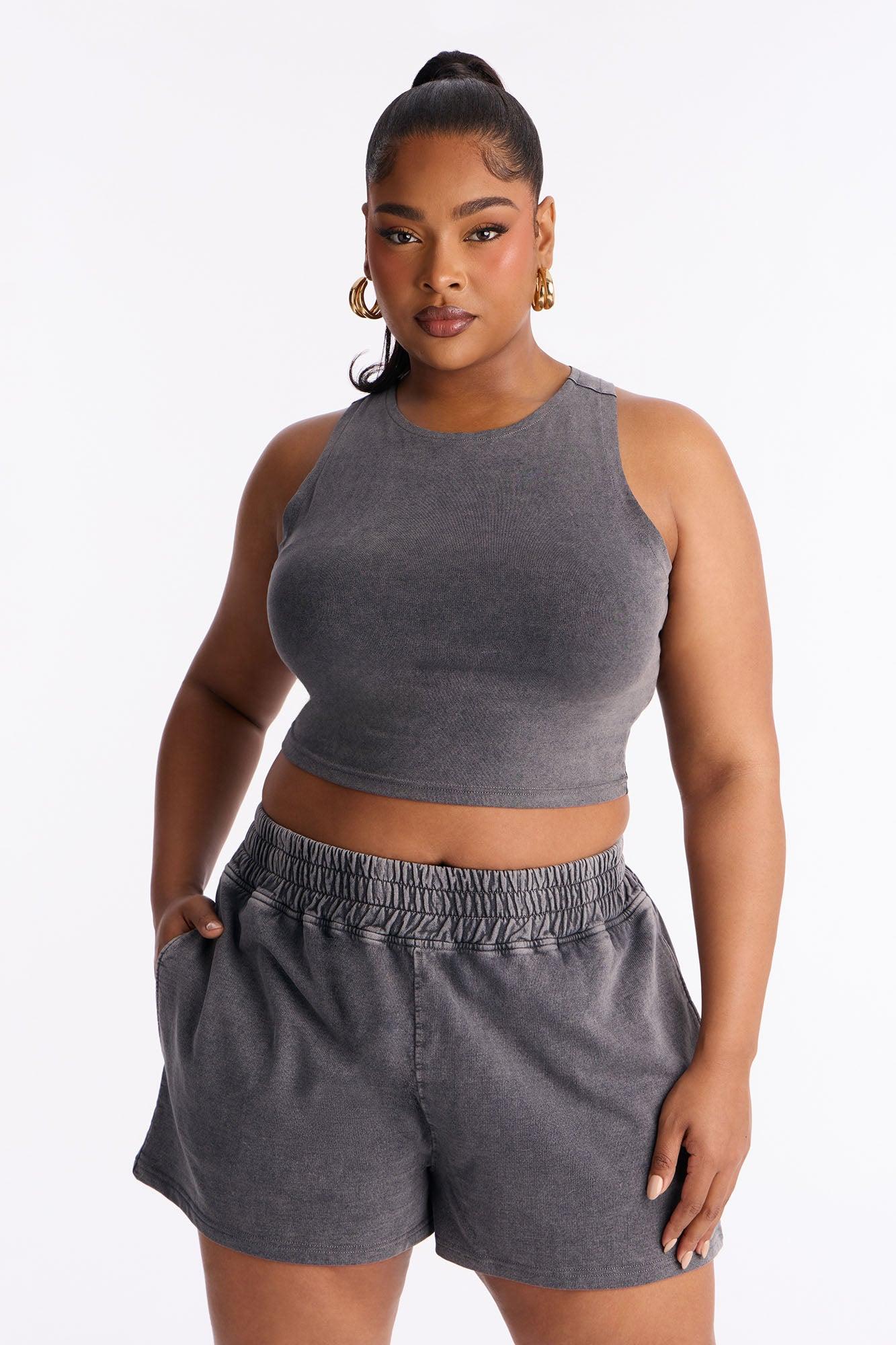 Available In Mauve And Charcoal. Tank Top And Short Set Stretch Elastic Waistand Pockets Disclaimer: Due To The Specialized Wash, Each Garment Is Unique. Top: 95% Polyester 5% Spandex Bottom: 100% Cotton Imported California Proposition 65WARNING: Cancer and Reproductive Harm - www.P65Warnings.ca.gov.