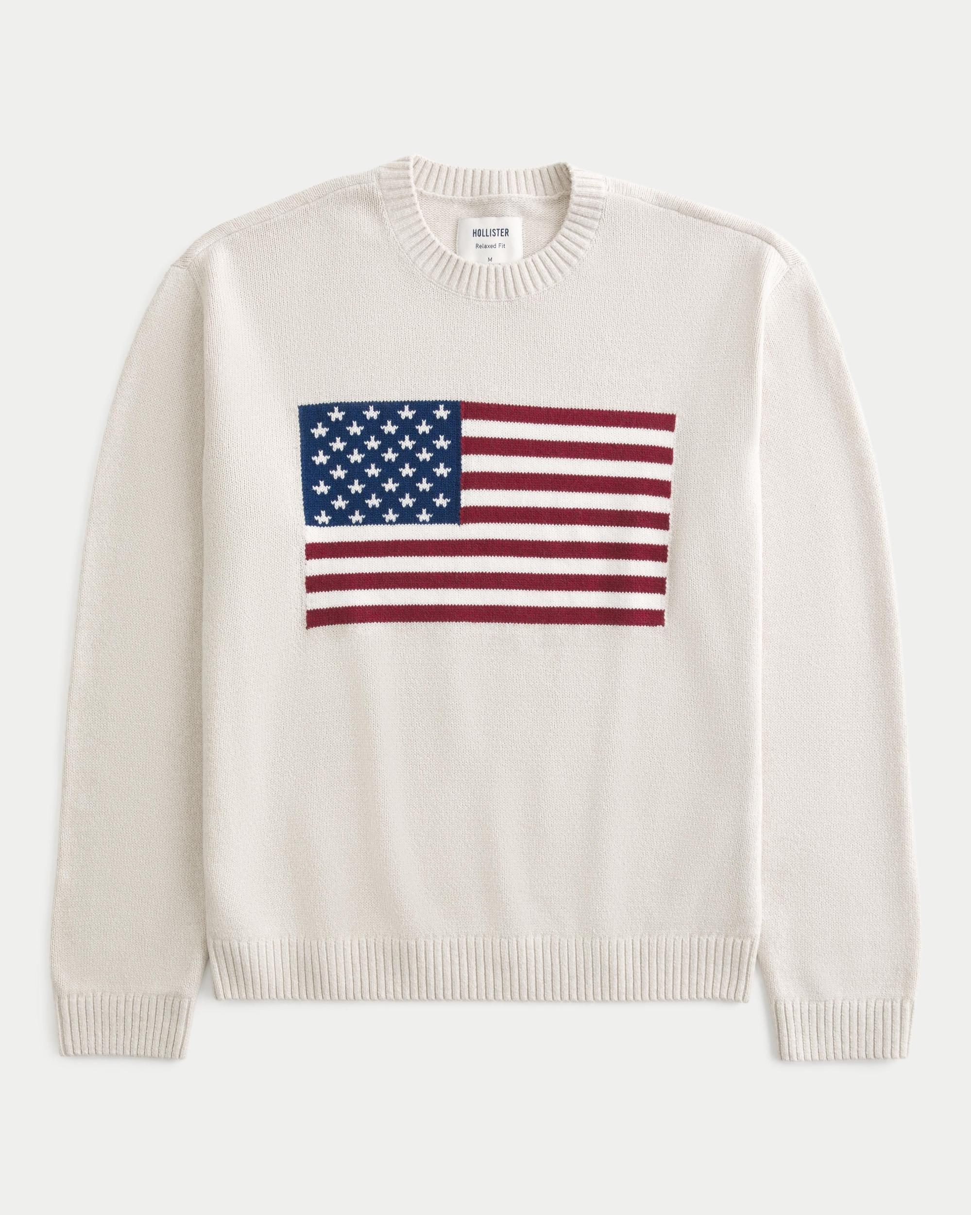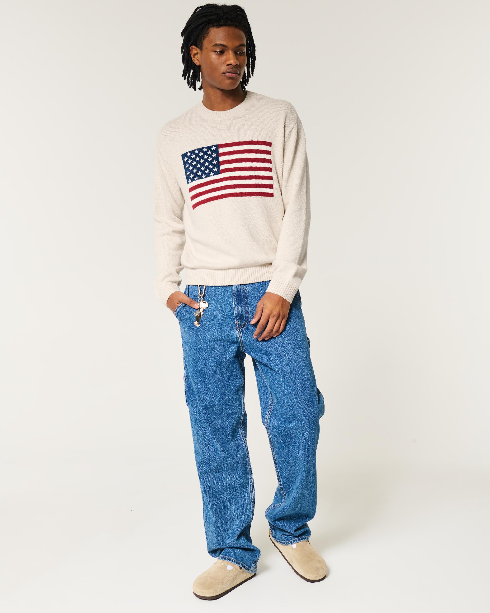 Relaxed American Flag Graphic Crew Sweater