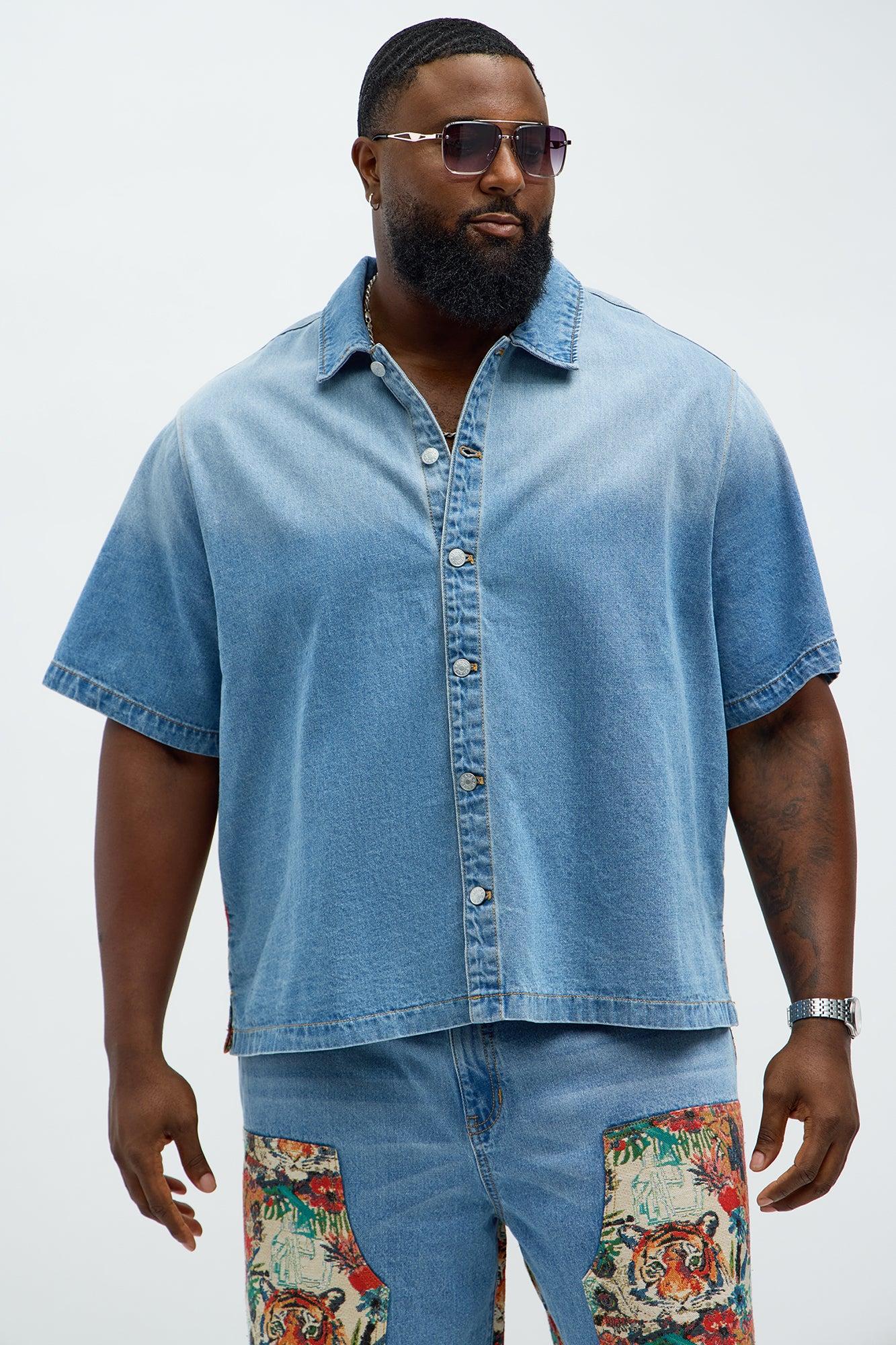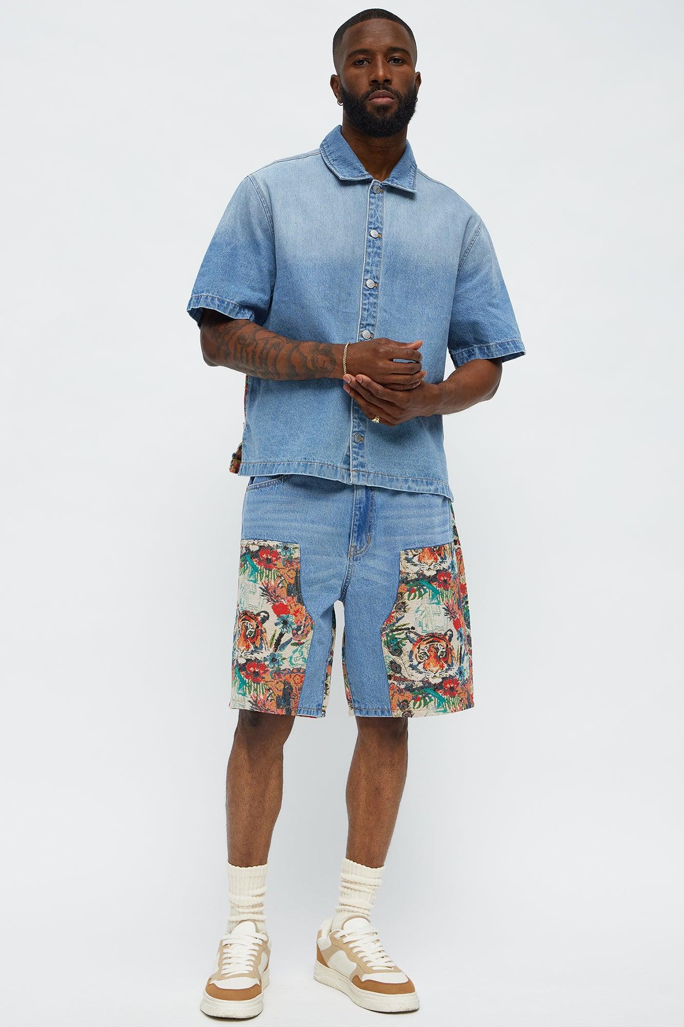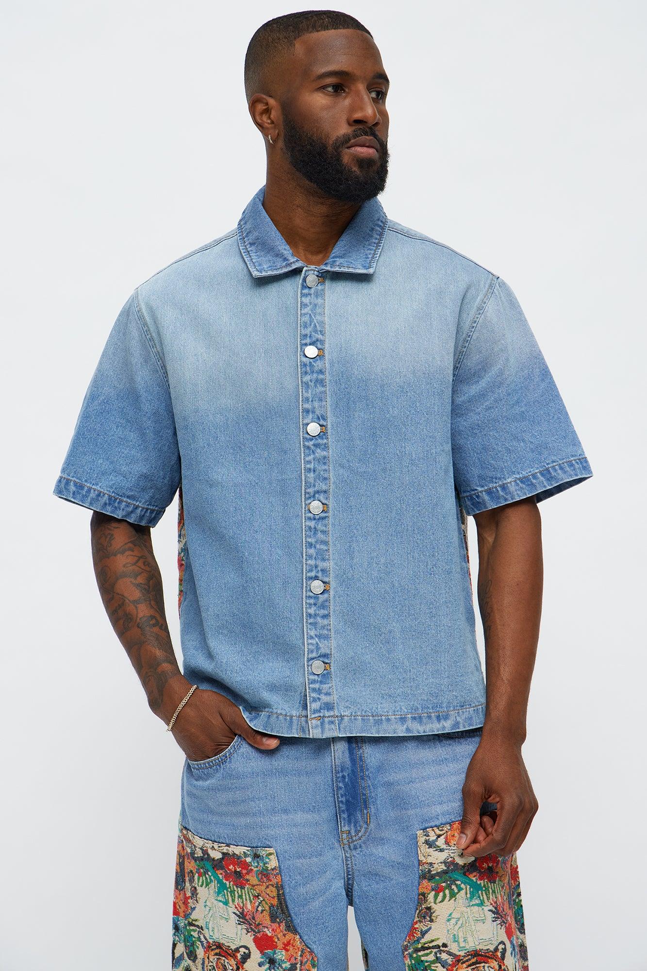 Available In Blue/combo. Fold Down Collar Front Button Closure Short Sleeves Pair with "Relaxed Ansel Tapestry Carpenter Denim Shorts" Disclaimer: Print Placement May Vary Self: 100% Cotton Contrast: 80% Polyester 20% Cotton Imported California Proposition 65WARNING: Cancer and Reproductive Harm - www.P65Warnings.ca.gov.