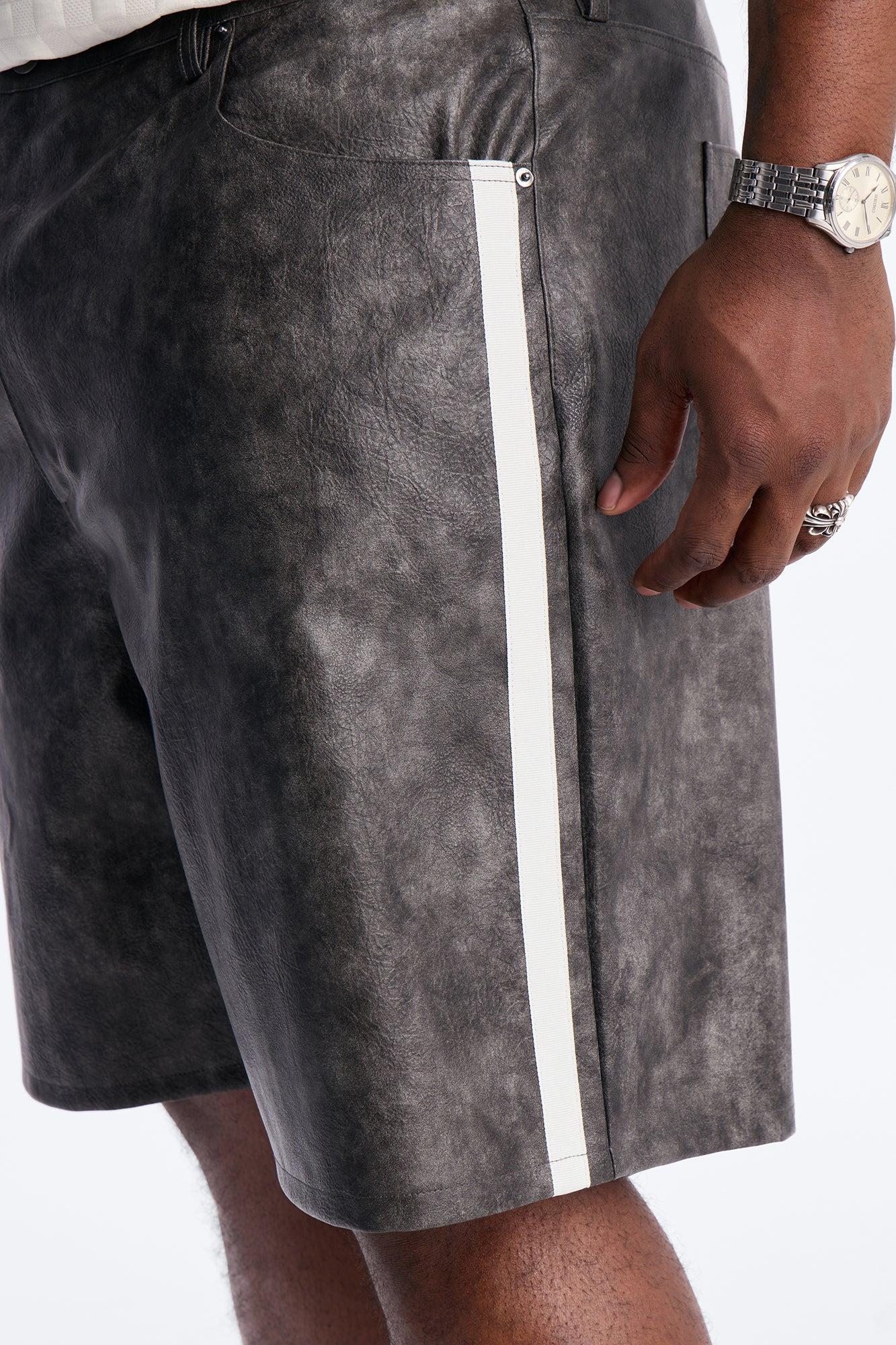 Available In Black. Fixed Waist Relaxed Fit Front Button Closure Side Hand Pockets Contrast Side Stripe Self: Coating: 100% Polyurethane Backing: 100% Polyester Imported California Proposition 65WARNING: Cancer and Reproductive Harm - www.P65Warnings.ca.gov.