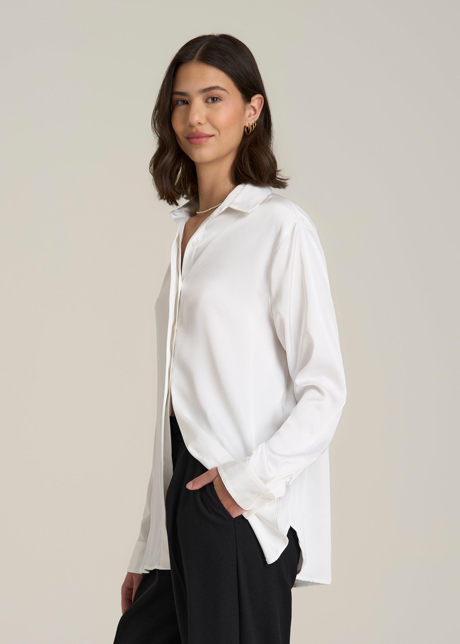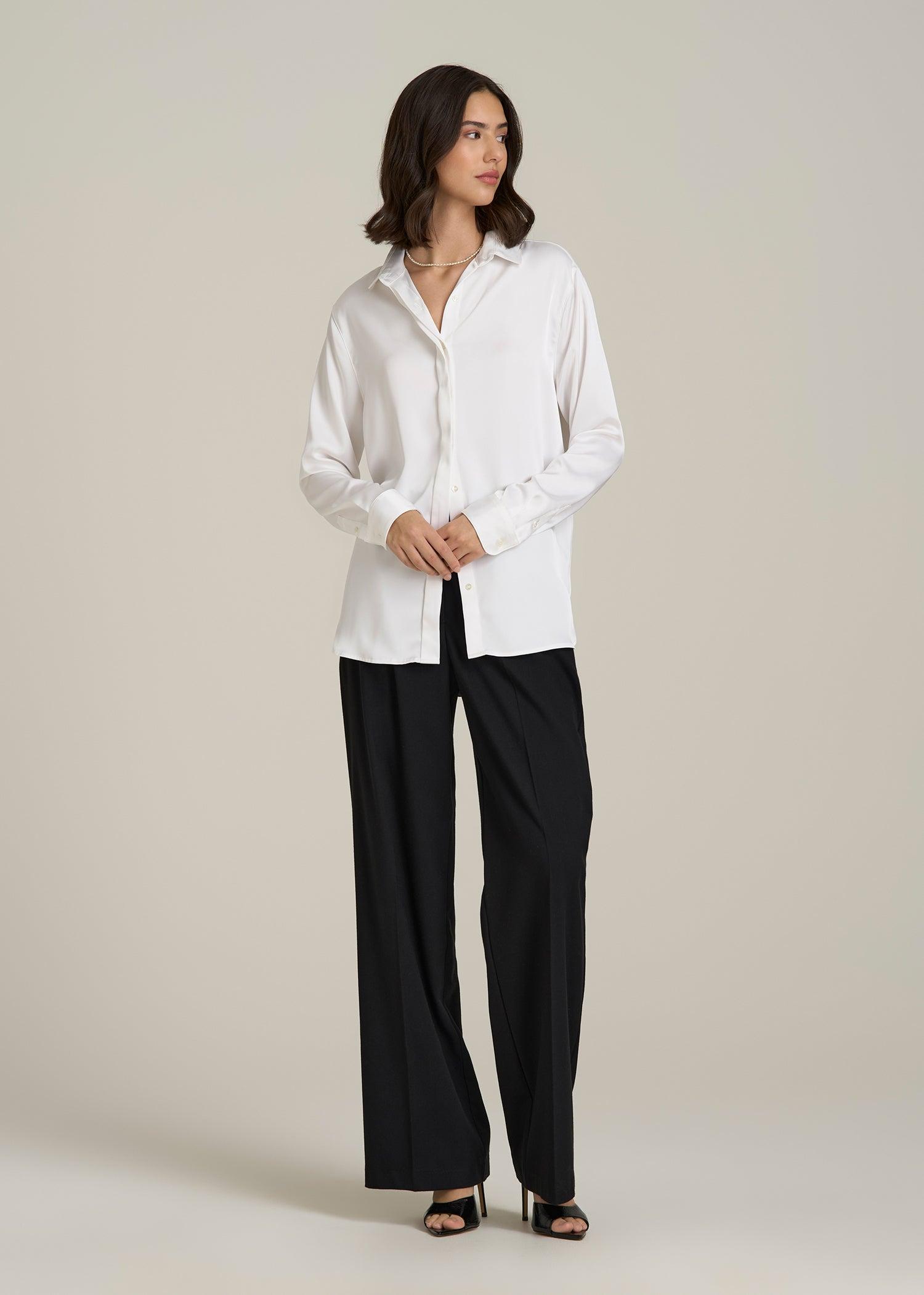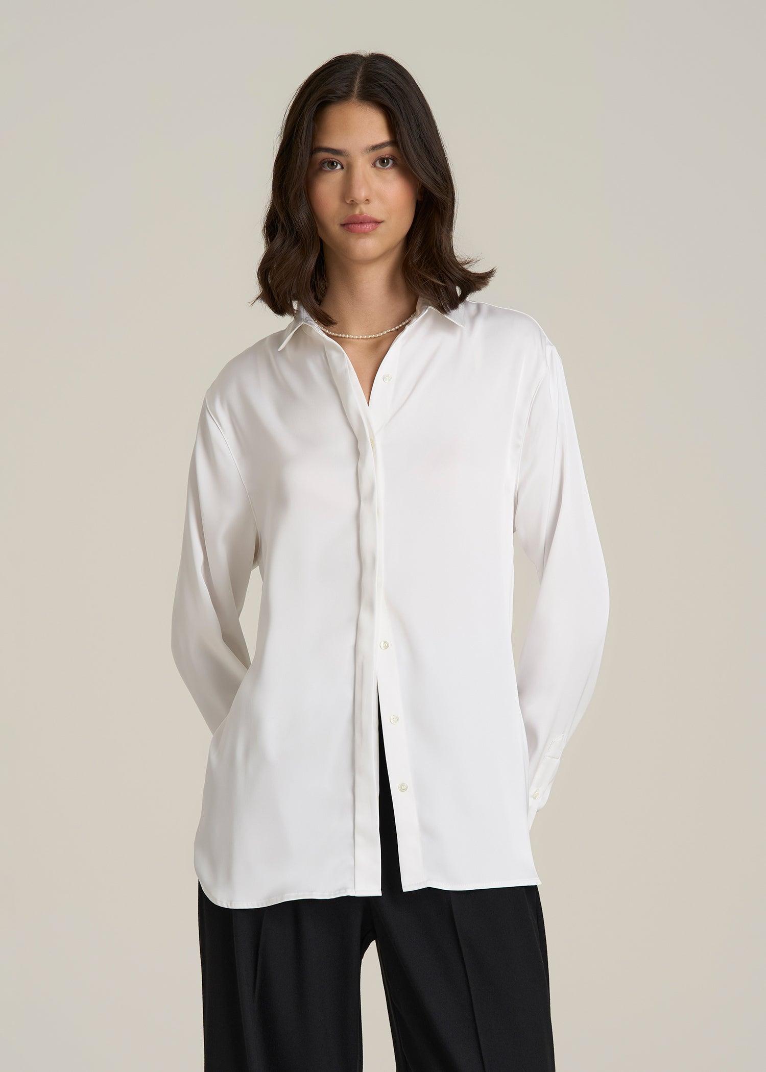 Relaxed Button-Up Blouse for Tall Women in Pearl White Female