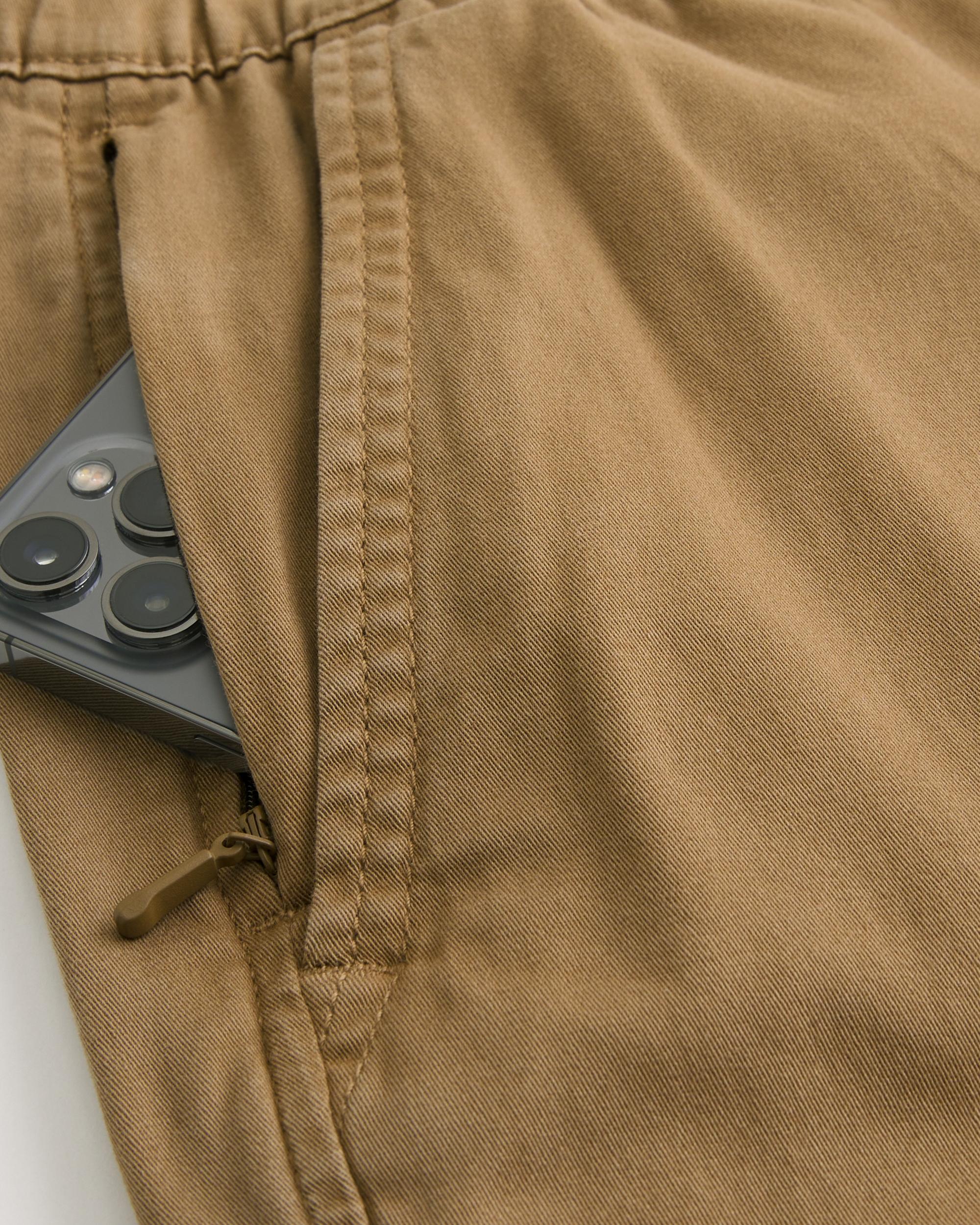 Comfortable twill joggers designed with a relaxed leg and side cargo pockets. Right zipper pocket, banded hems, drawstring waist.