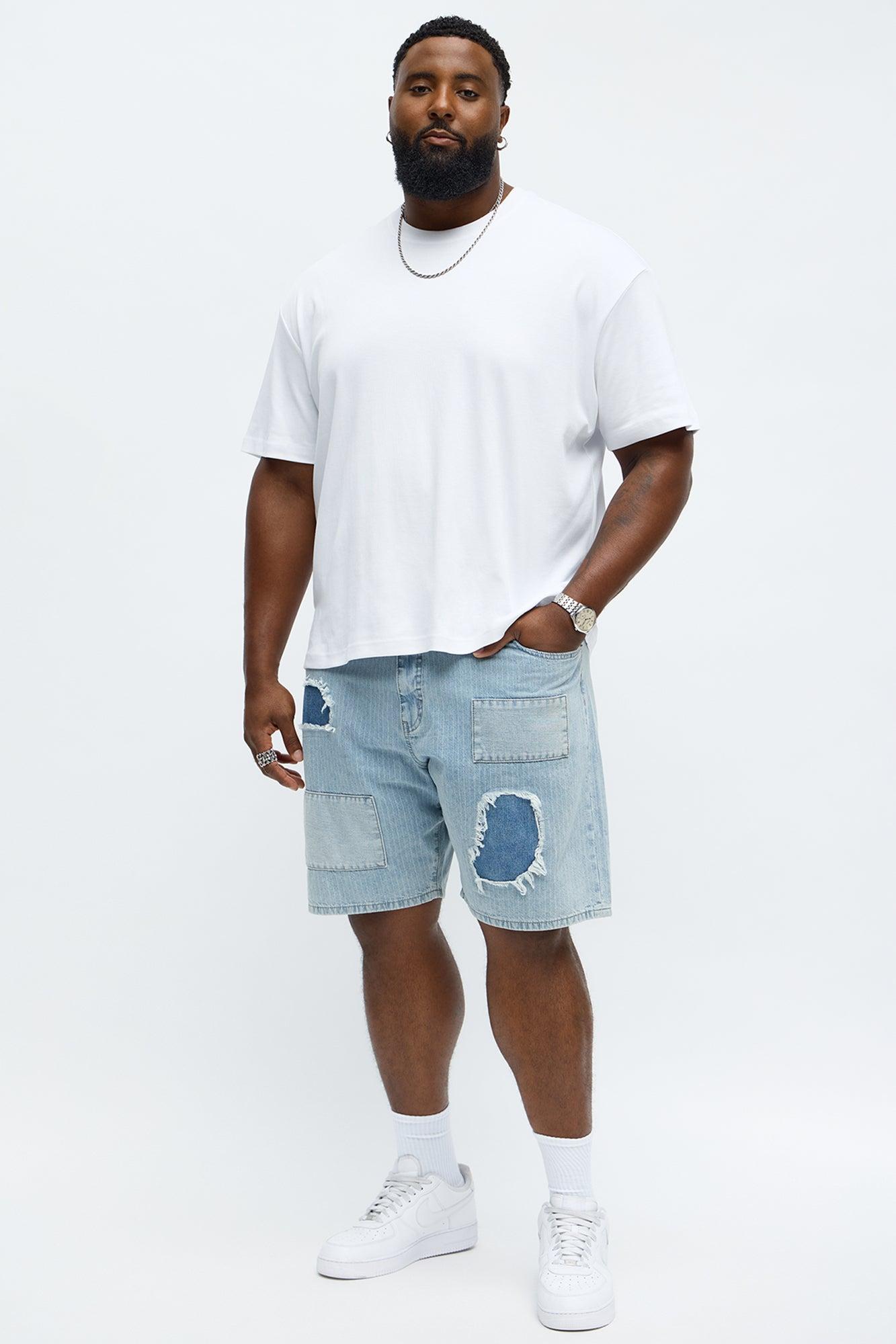 Relaxed Contrast Distressed Denim Short - Medium Wash