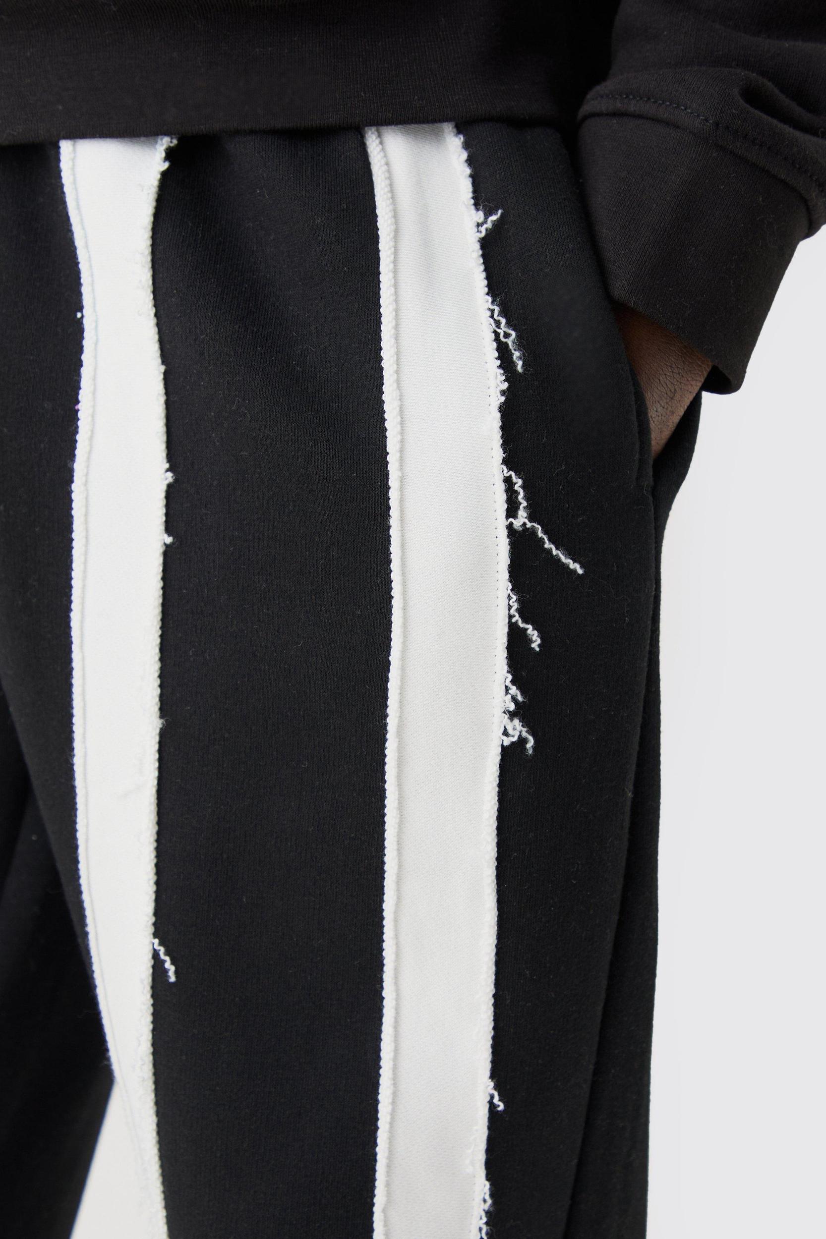Relaxed Cut & Sew Stripe Raw Edge Sweatpants | boohooMAN USA