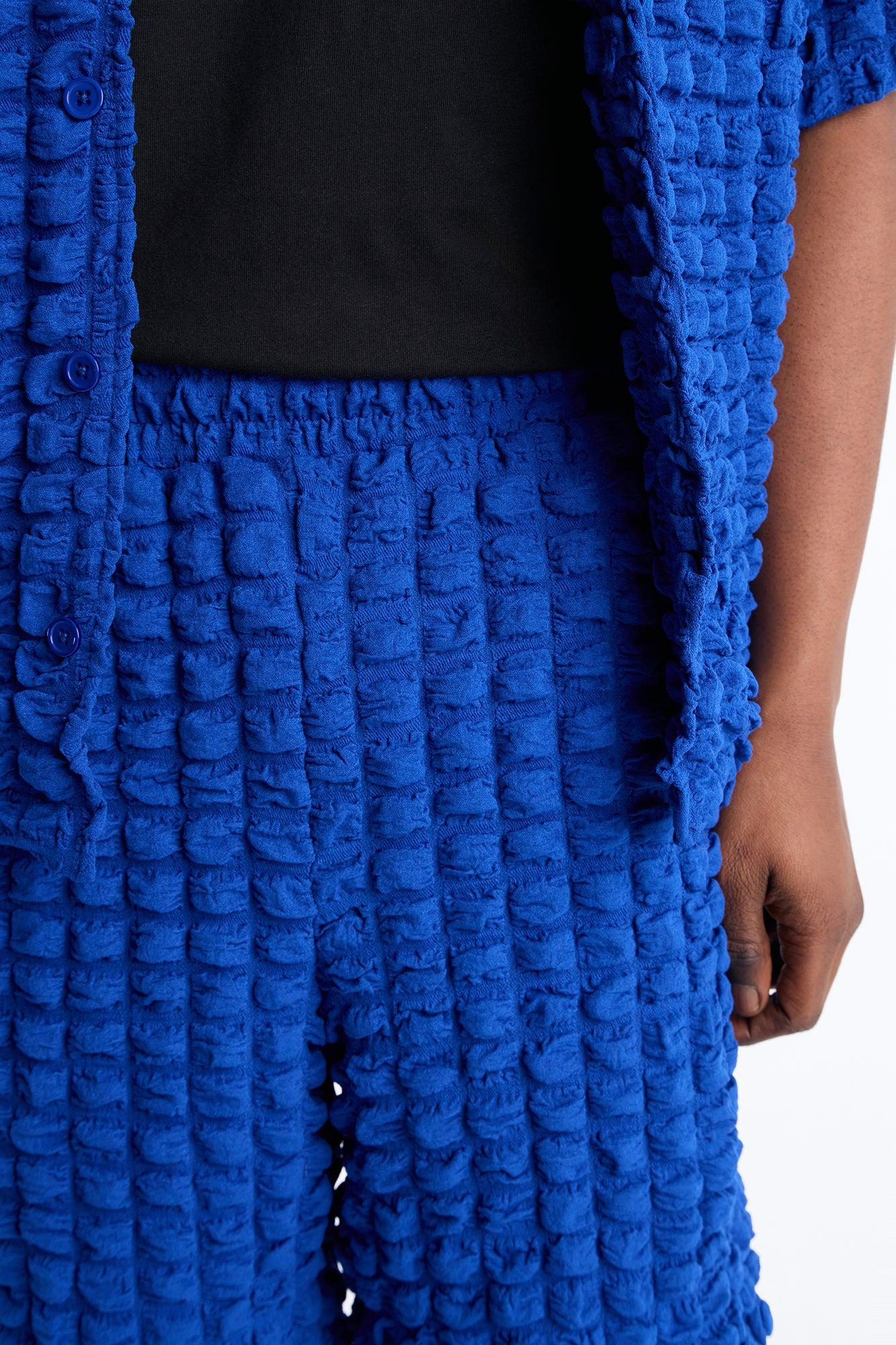 Available In Blue. Relaxed Fit Bubble Texture Drawstring Elastic Waist Pair With "Relaxed Effervesce Button Up Shirt" Self: 97% Polyester 3% Spandex Imported