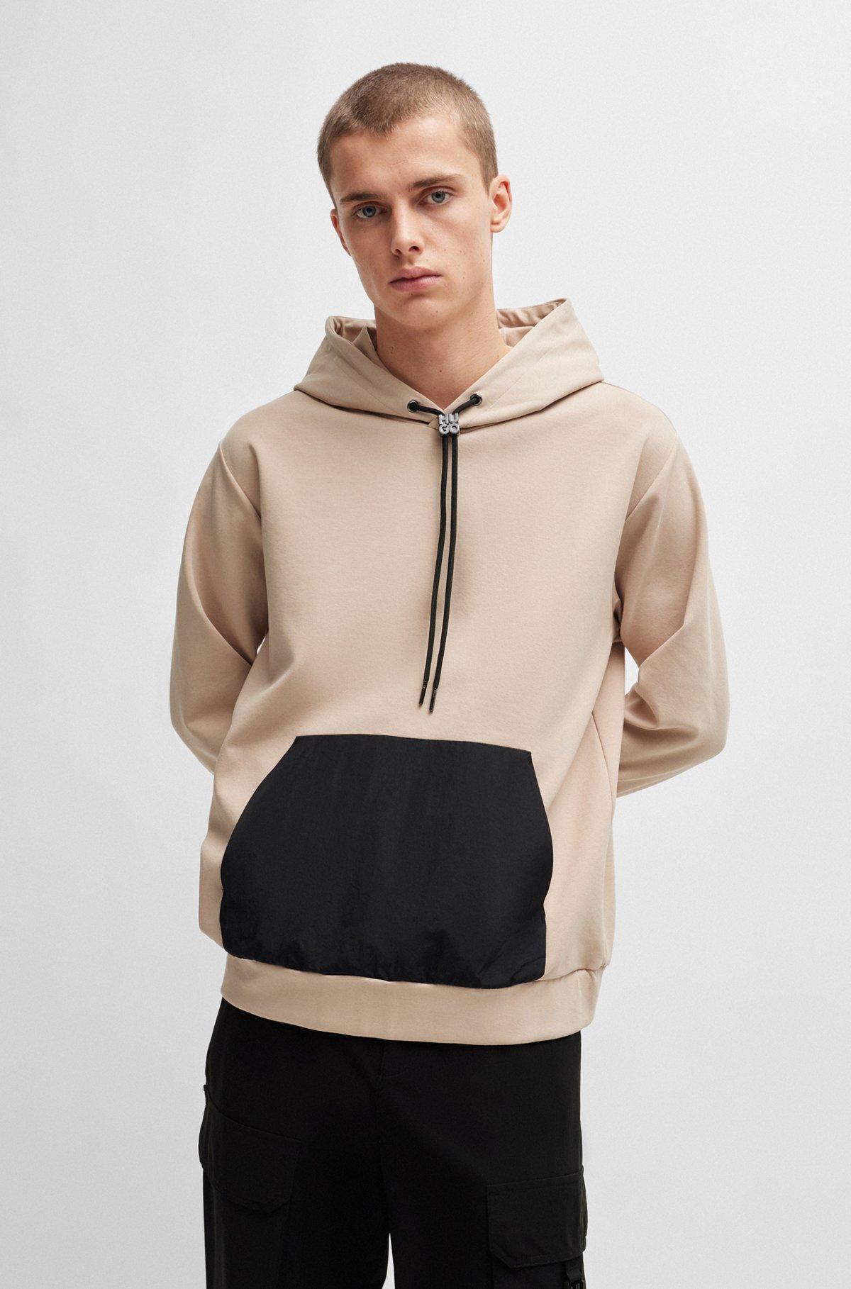 A relaxed-fit hoodie by HUGO Menswear, crafted in stretch cotton with contrast-fabric at the pocket and a stacked-logo stopper on the drawcord.