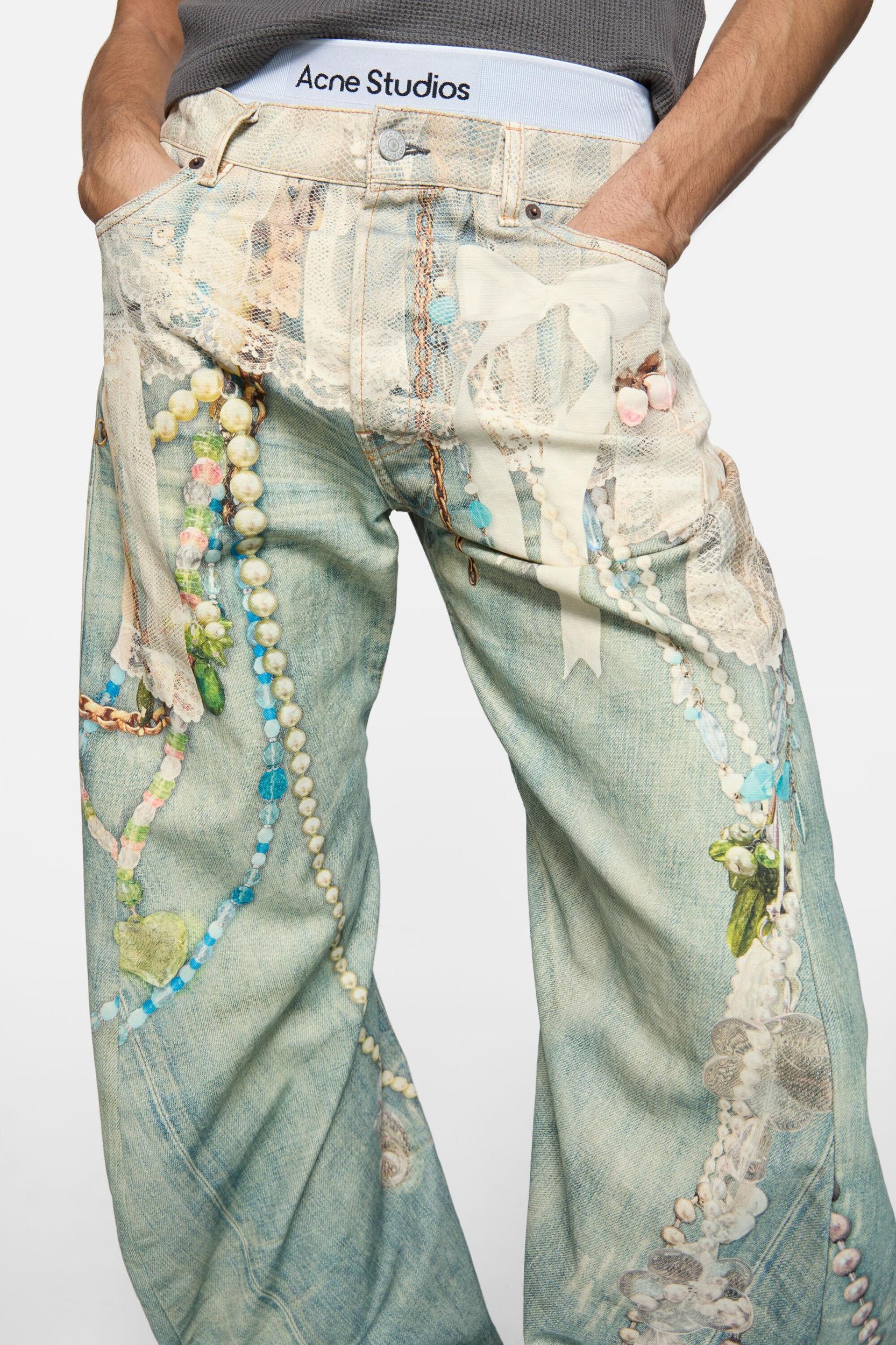 2006 jeans cut to a relaxed fit with a low waist and wide, shaped leg. Crafted from cotton canvas and featuring a seasonal trompe-l’œil print of a keychain detail. FN-MN-TROU001129
